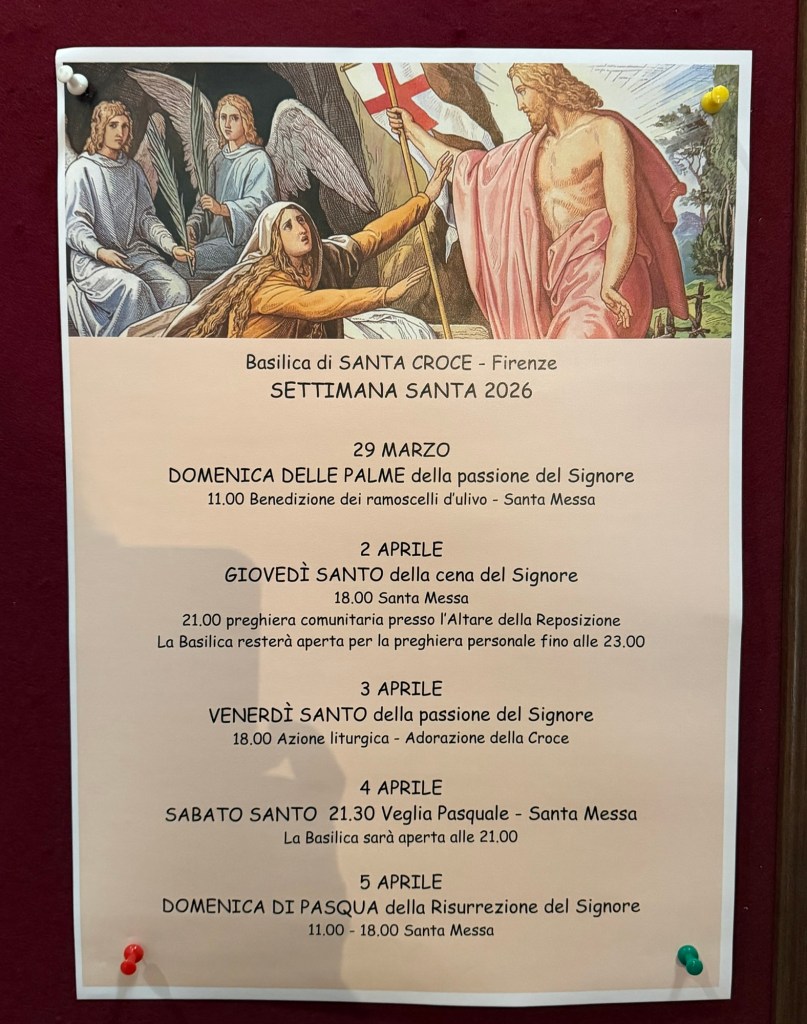 Above: Holy Week is coming. Very important for the church! The Holy Week services at Santa Croce are detailed in this modest parish church. Santa Croce, the very important Franciscan church, is quite nearby.