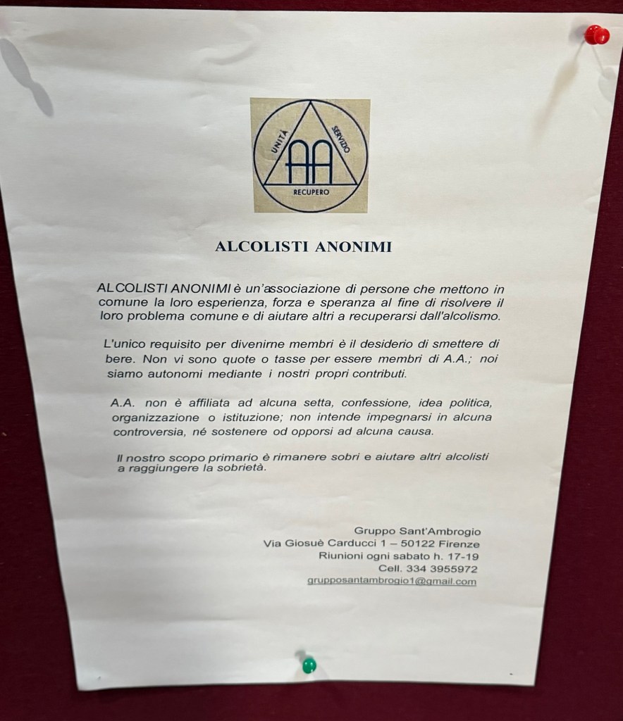 Alcoholic Anonymous. Yes, even in Italy it is an issue.