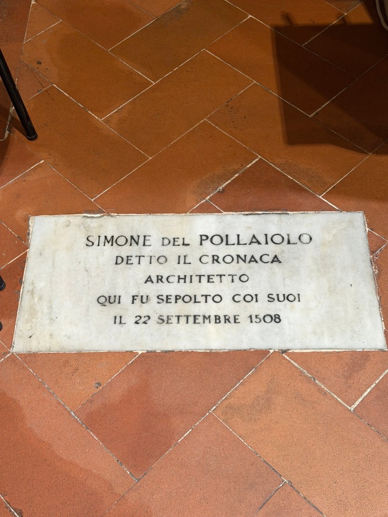 There are some very artistic/culturally significant burials within the church, including, Verrochio, Simone dell Pollaiolo called Cronaca, and Mino da Fiesole and others.