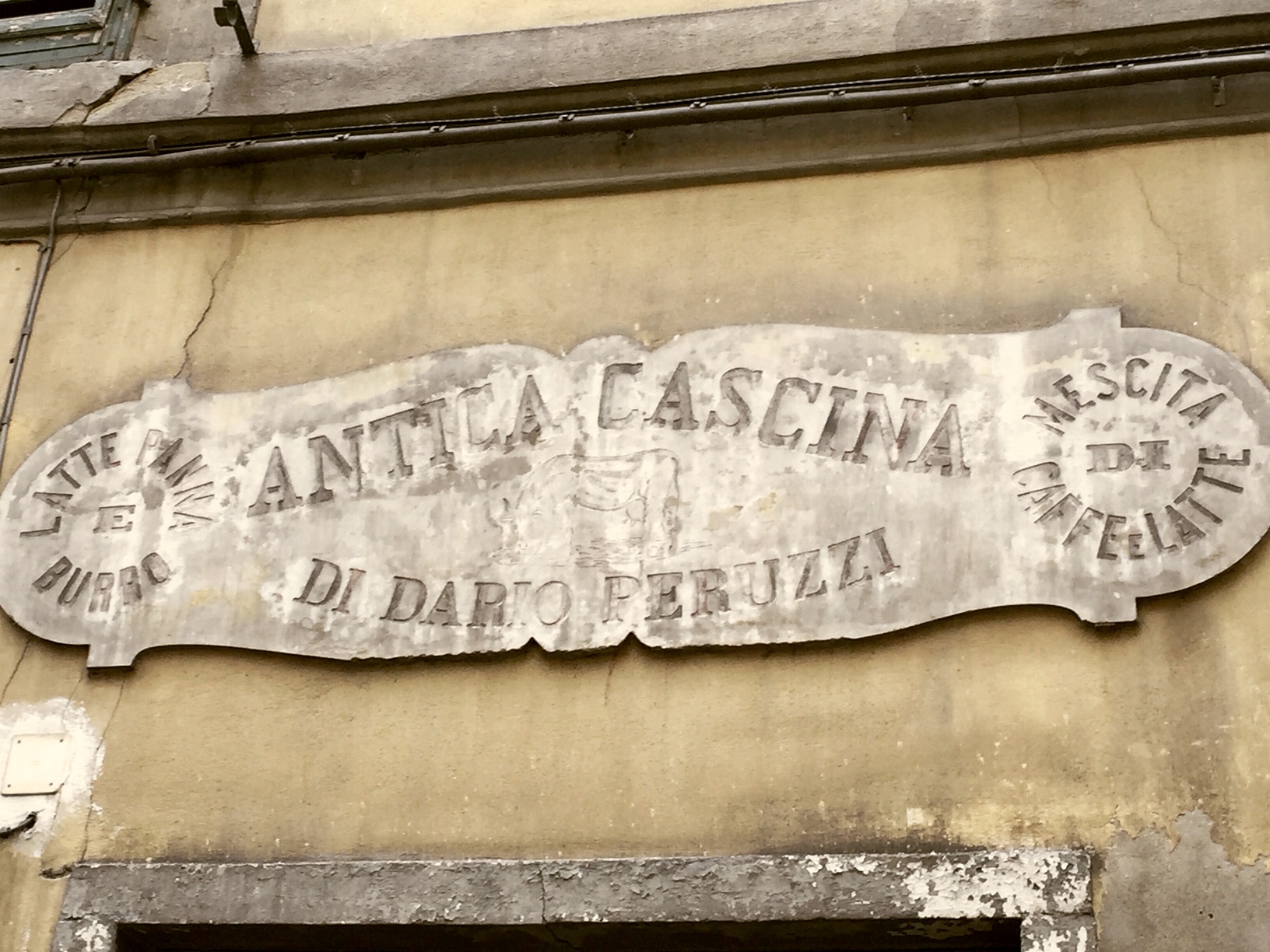This evocative old surviving street sign for this long lost business in the heart of Florence, announces “Antica Cascina di Dario Peruzzi.”. Translated it advertises this “old farmhouse,” which served (or sold for takeaway) milk, cream and butter and “a bar room” of coffee and milk. I wish I could time travel in for a moment or two to see what like was like inside this lost business. Dario Peruzzi, whoever you were, I remember you.
