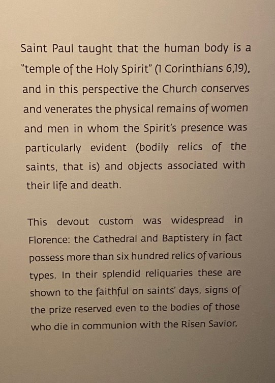 The next 2 labels deal with the custom of collecting relics some of the ones preserved in Florence:
