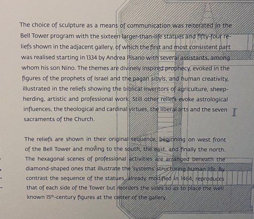 For more of these relief sculptures that form the program on the bell tower, see my earlier post:https://laurettadimmick.com/2020/05/25/charmed-by-the-late-medieval-carvings-at-the-museo-dellopera-di-duomo-firenze/