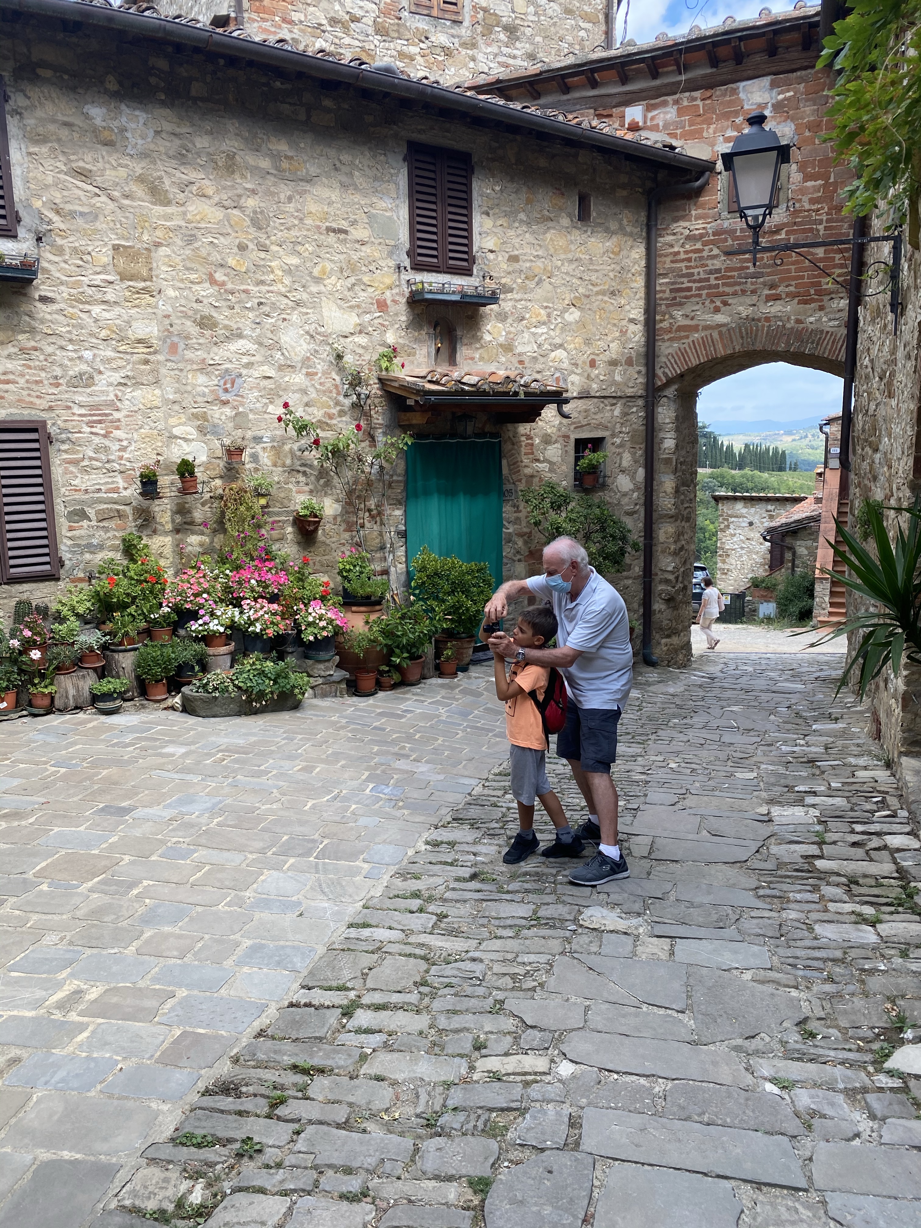 This was a charming vision. Grandfather is teaching grandson how to take a picture of Bella Italia!