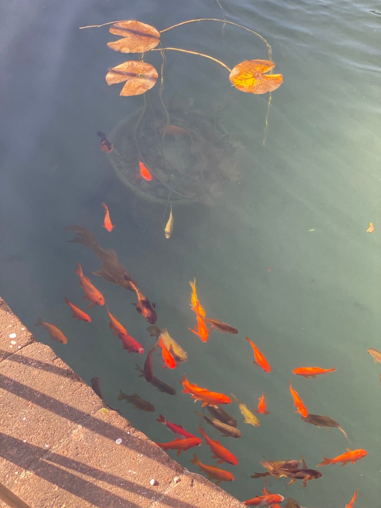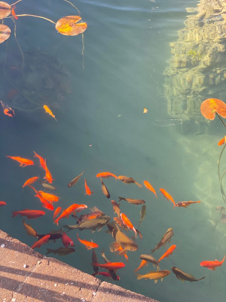 But, the koi were enjoying the November sun in the next fountain: