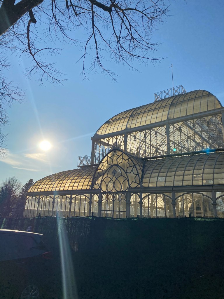In the park that is called a horticultural garden that is a couple of blocks from my apartment is this gorgeous 19th century glass house. They were all the rage in the 19th century, especially notable in the UK. But, Italy has some too, as you can see here.