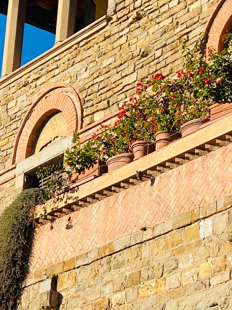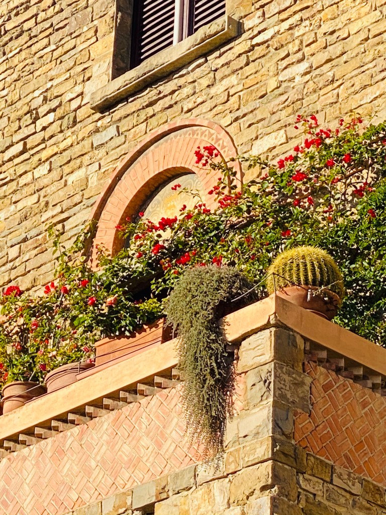 I love the way the current owner has planted the terrace. It is beautiful in all seasons, even now, in winter, with red roses still in bloom.