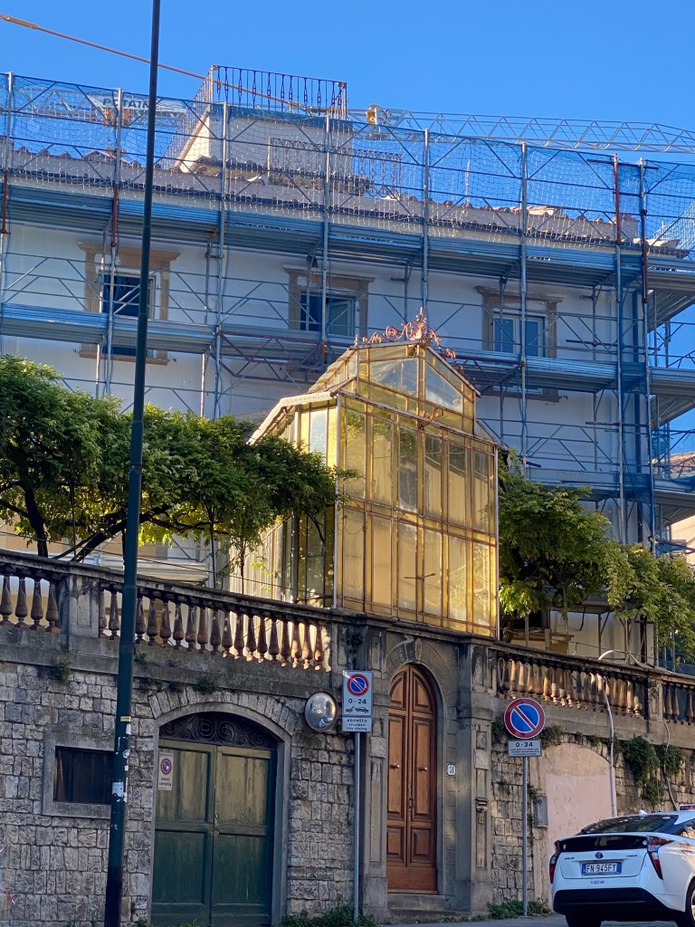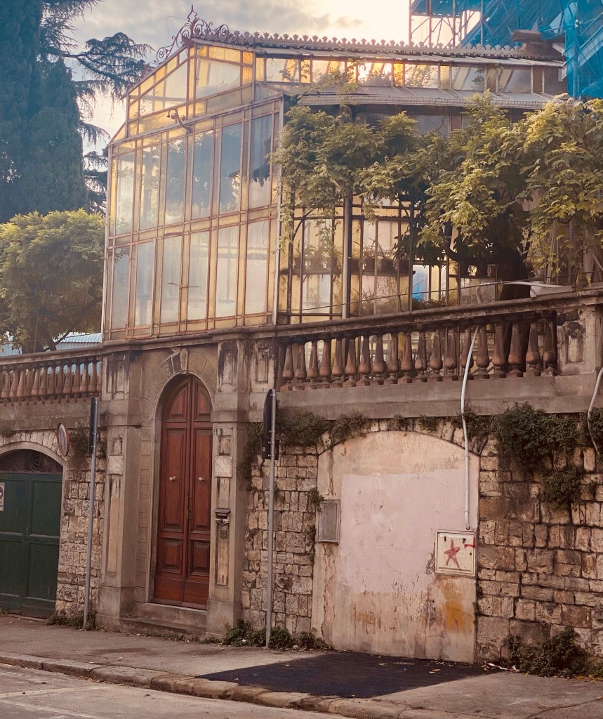 I recently posted about the marvelous 19th-century glass house that is preserved for the public in Florence’s Giardino Orticultura. At the end of that post, I included an adorable private glass house that is a stone’s throw from the public garden.