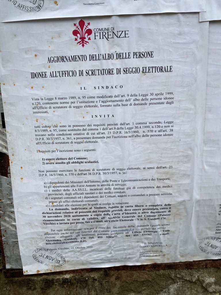 The inscription of MCMXV over the door tells the story: this lovely old palazzo was constructed in 1915. Before the first world war. Think of what has transpired in the 105 years. WWI, Armistice, the rise of Fascism, WWII, Florence occupied by German forces, Florence freed by Allied forces. All the while, this building sat here. It has seen it all. I suspect Covid-19 will not bother it in the least.