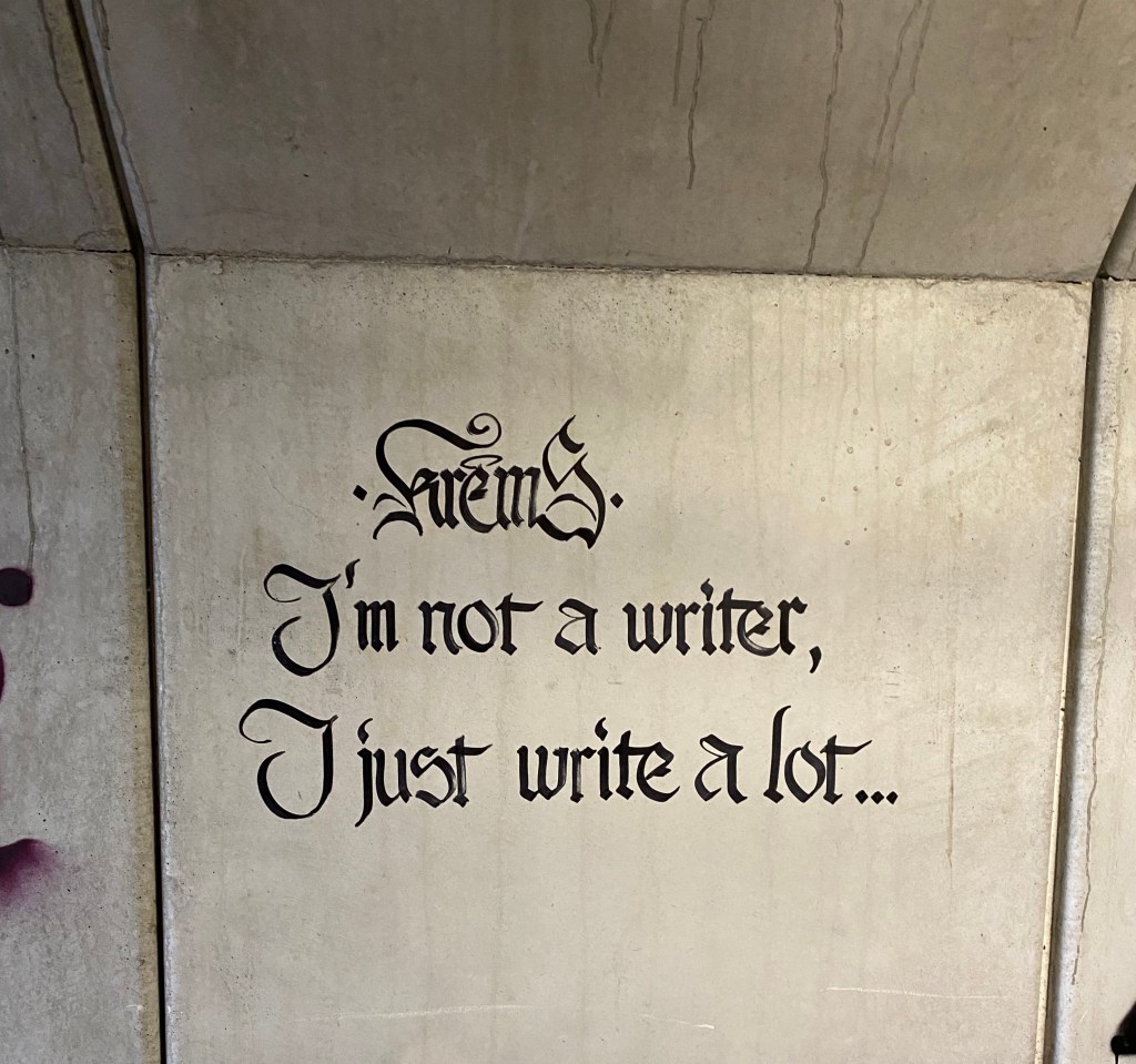 I just write a lot December 27, 2020December 9, 2020 / get back, laurettadimmick Graffiti in an underpass, Florence Share this: Share on X (Opens in new window) X Share on Facebook (Opens in new window) Facebook More Share on Reddit (Opens in new window) Reddit Share on Tumblr (Opens in new window) Tumblr Share on Pinterest (Opens in new window) Pinterest Print (Opens in new window) Print Share on LinkedIn (Opens in new window) LinkedIn Email a link to a friend (Opens in new window) Email Like Loading...