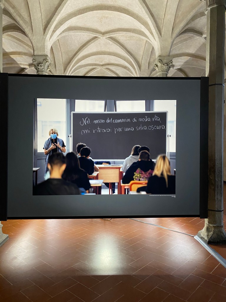 “In what used to be the dining hall of the monumental complex of Santa Maria Novella you can find the photography exhibition “Dante 700 – A portrait of Dante and the poet’s places in the photographs of Massimo Sestini”.