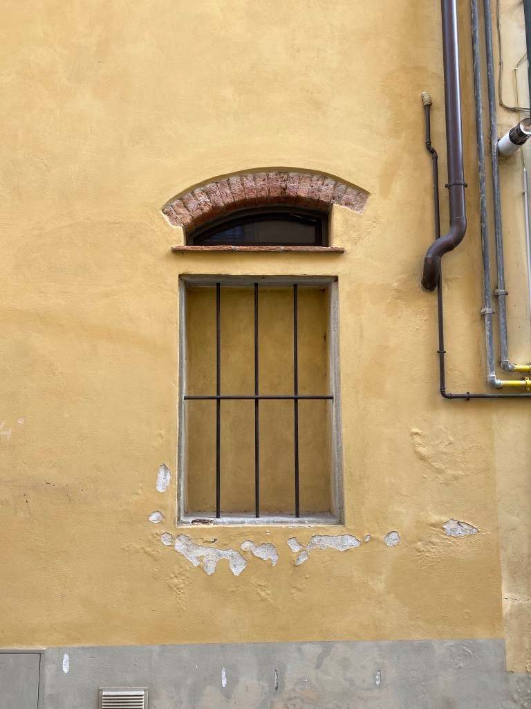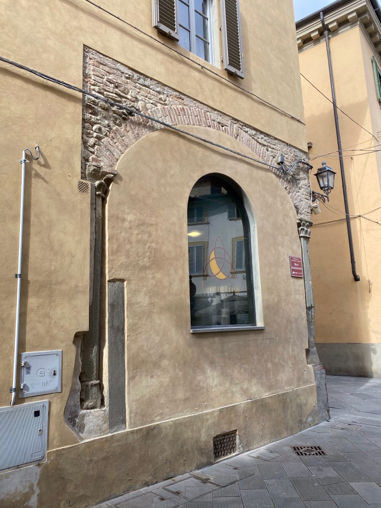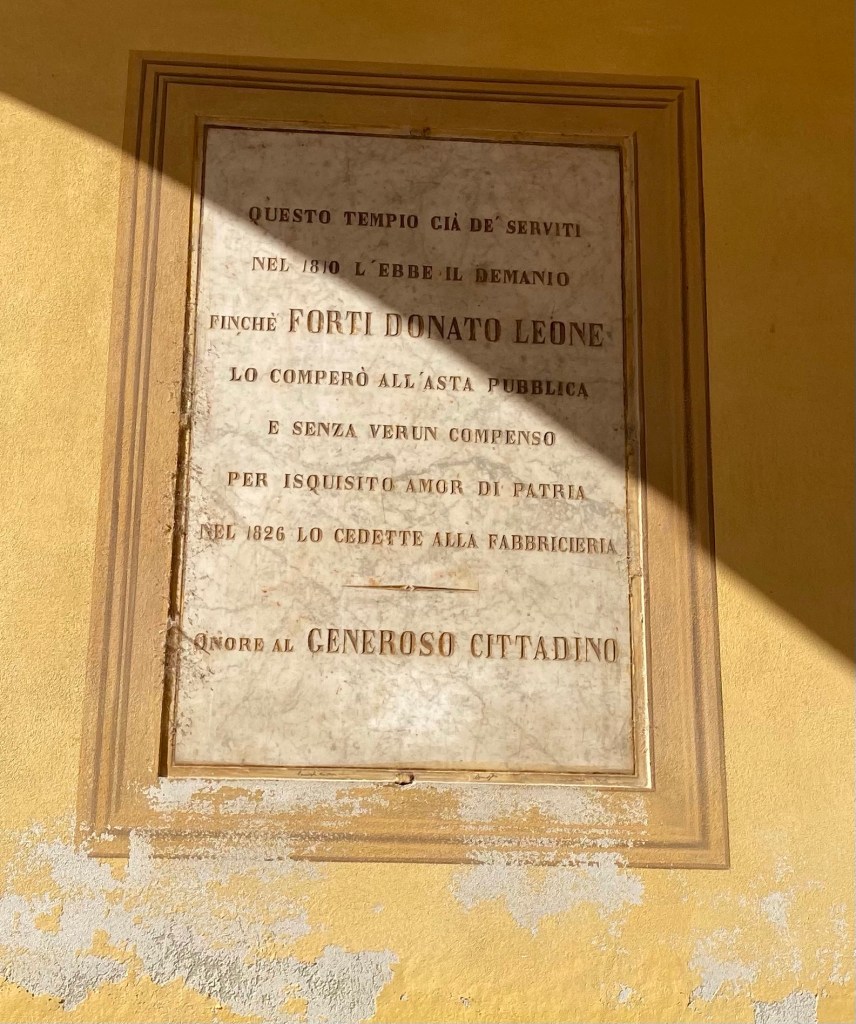 Moving across the street, I happened upon this handsome structure, the Misericordia of the town. “Misericordia” is the name given to pious, voluntary institutions, founded throughout Italy by as early as the middle of the 13th century. They were dedicated to providing free assistance to the sick and wounded, including their transport to hospitals, and the burial of the abandoned dead.