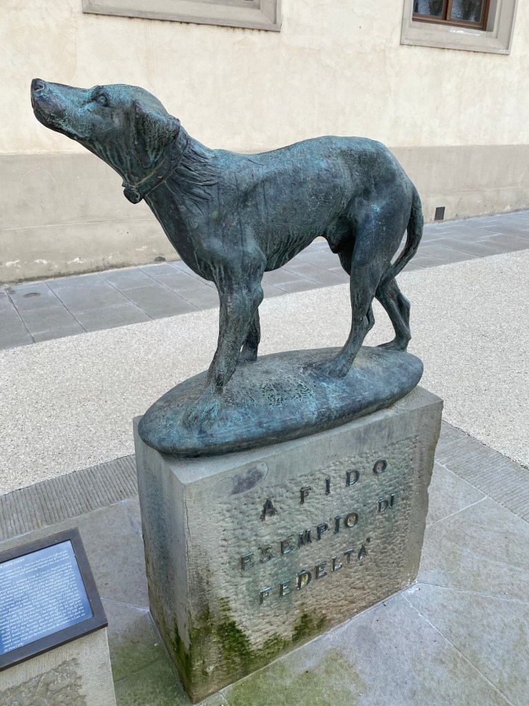 Fido (1941 – June 9, 1958) was an Italian dog that came to public attention in 1943 because of his demonstration of unwavering loyalty to his dead master. Fido was written about in many Italian and international magazines and newspapers, appeared in newsreels throughout Italy, and was bestowed several honors, and this public statue was erected in his honor in Borgo San Lorenzo.