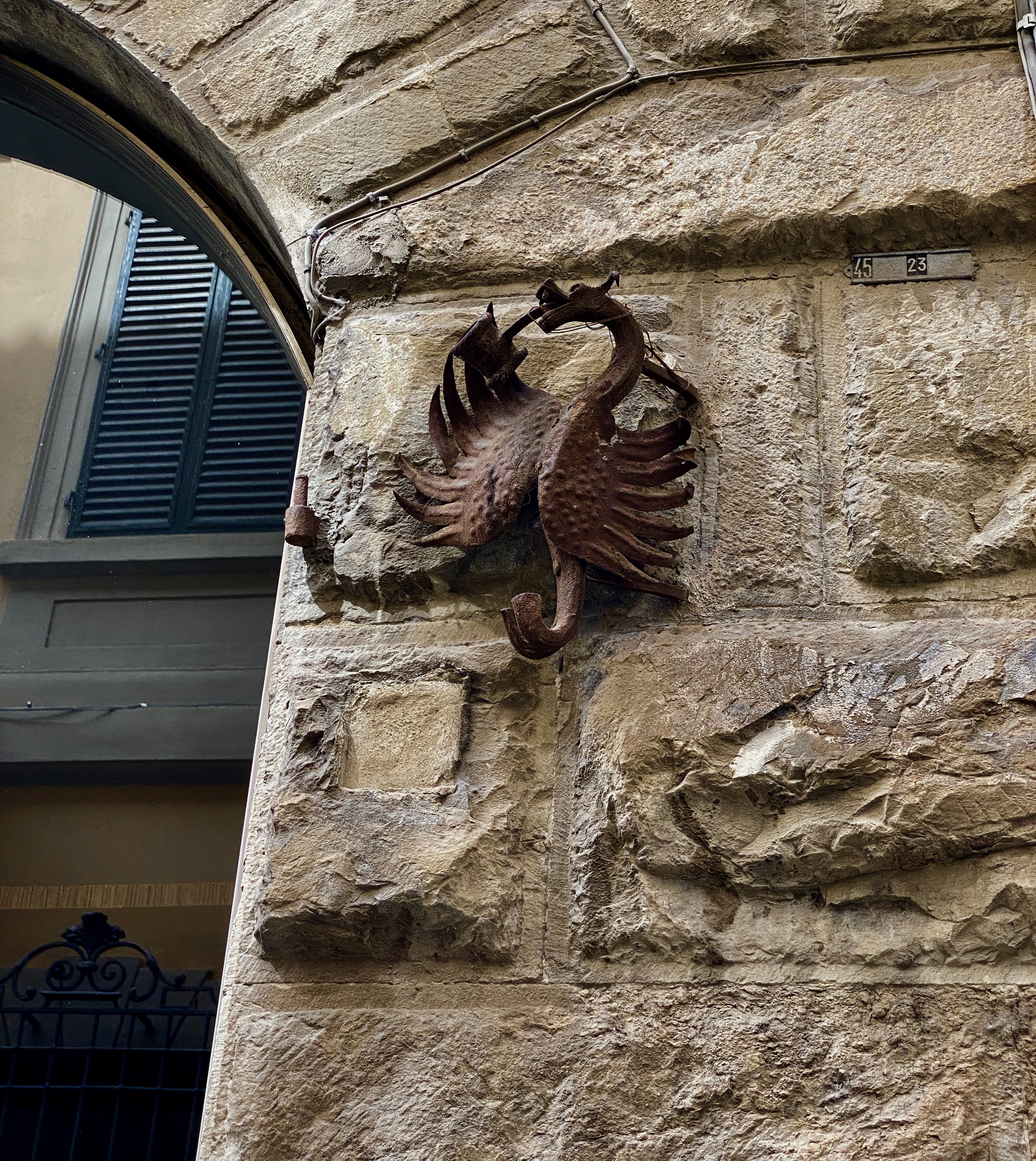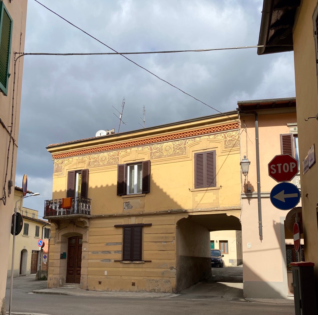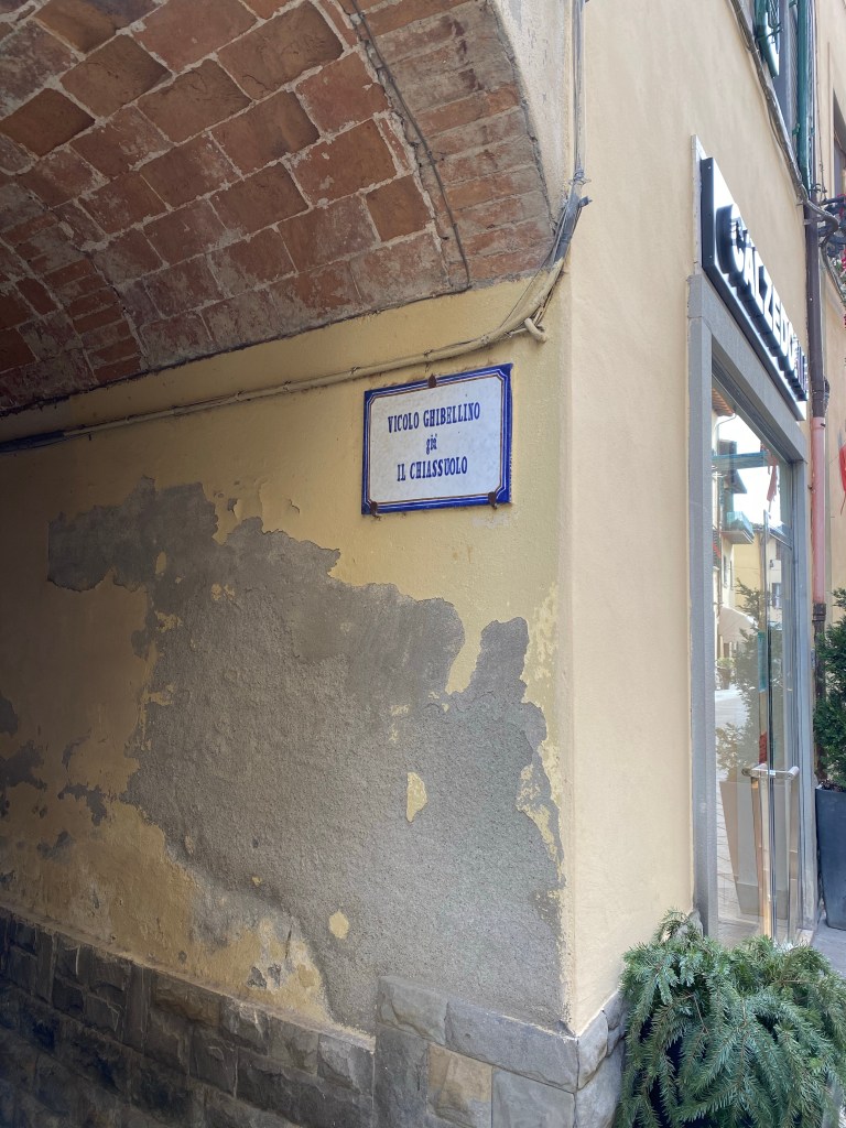 Below, the street sign which tells us that this little arched alleyway is called Vicolo Ghibellino, reminds me that this Borgo was a key player in the battle between the Guelphs and Ghibillines in Tuscany’s medieval past. The sign also says “gia Il Chiassuolo,” which simply means this was its former name. I wonder when the names changed and why. You see these kinds of signs all over Tuscany, with the former name written under the current one, and I always wonder when and why the names were changed.
