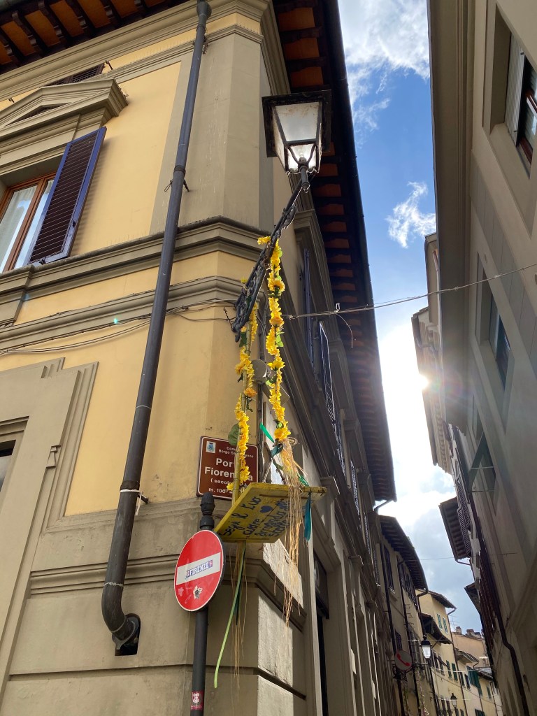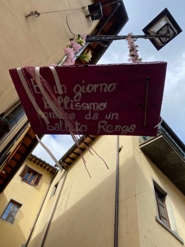 As in Pisa, Lucca, and Livorno, I saw the boards with death notices in the Borgo. The one below was near the Misericordia, as you might expect.