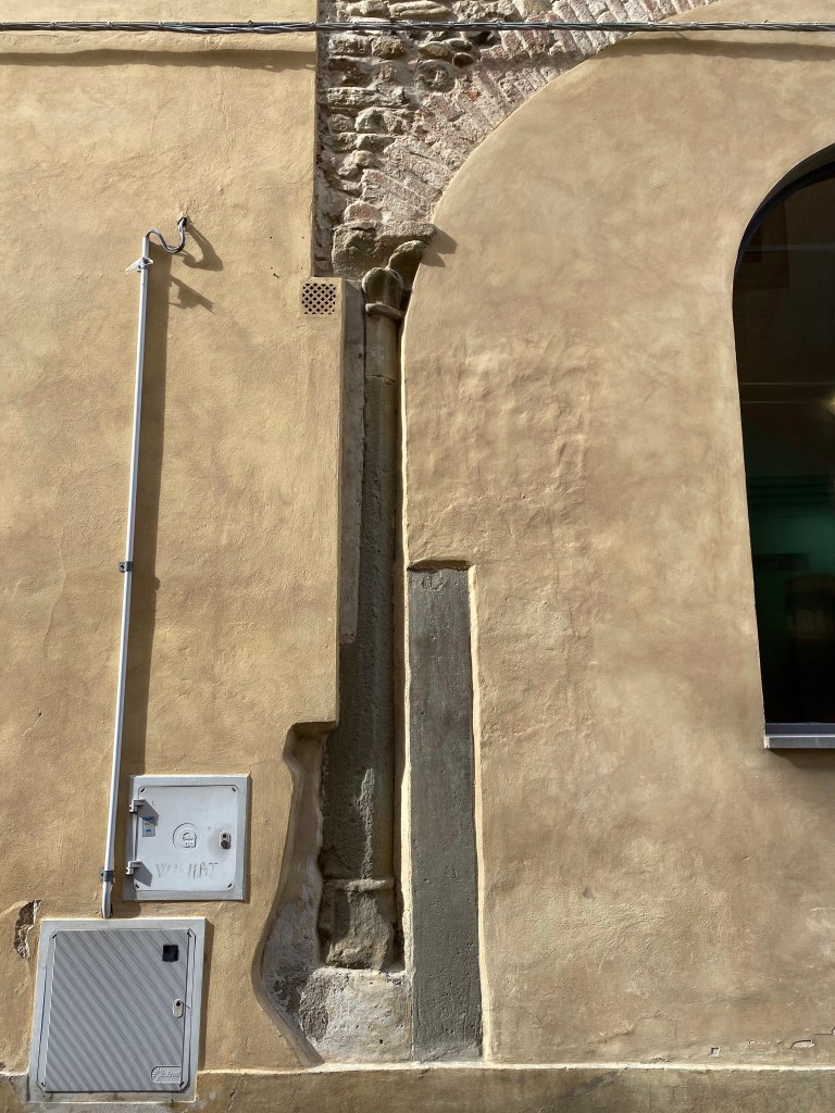 And, finally, some shots to close out this post. I am always interested to see how the fabric of the walls of buildings are formed. So often there are traces of prior buildings, which the Italians, ever aware of their incredible history, are wont to save. The next photos tells this story in the Borgo.