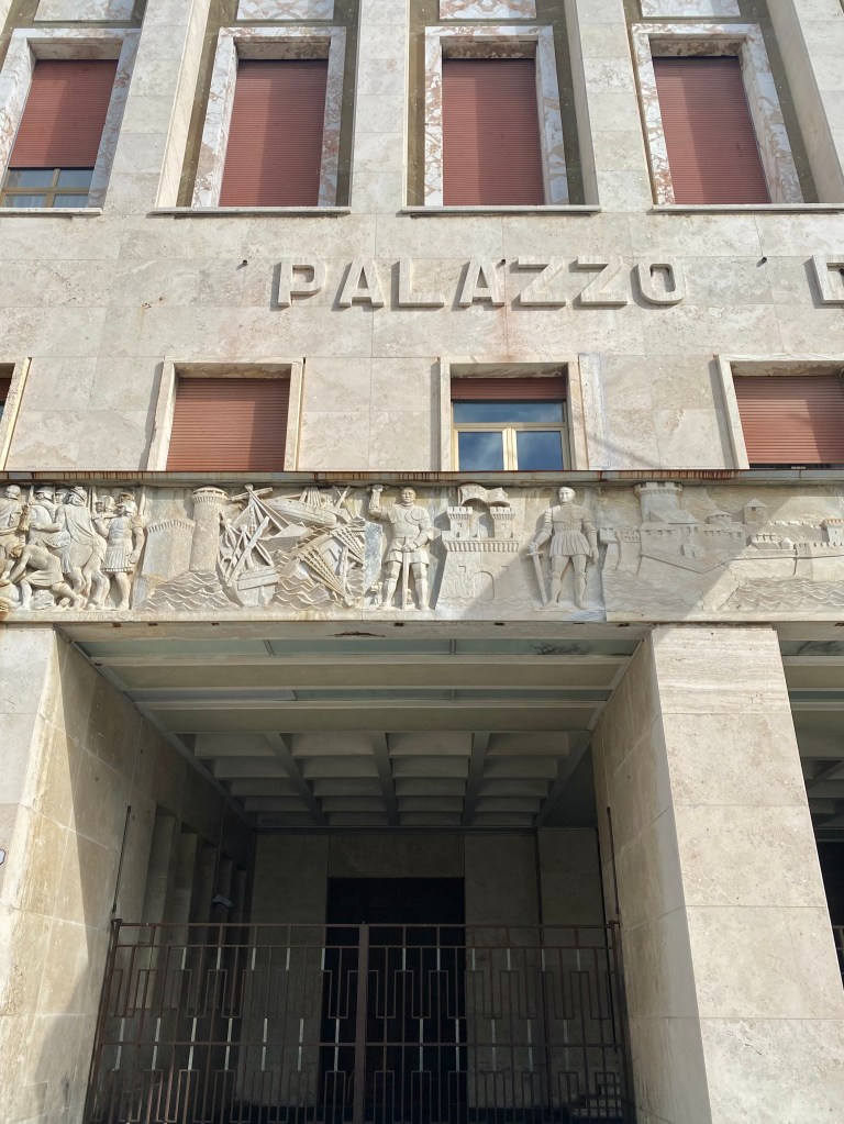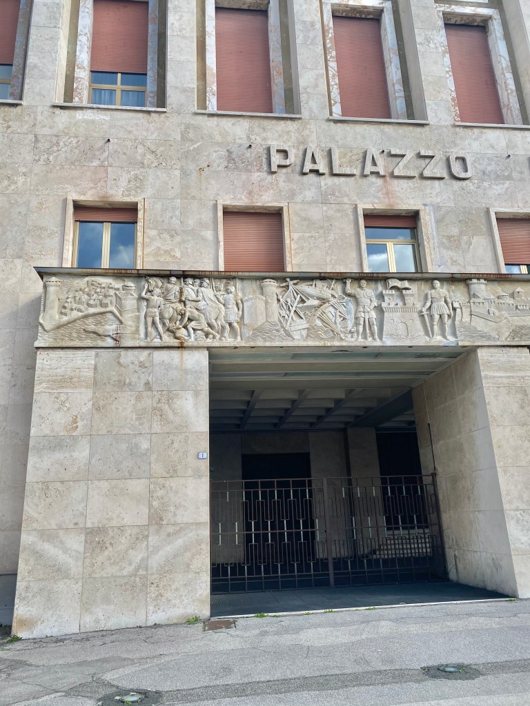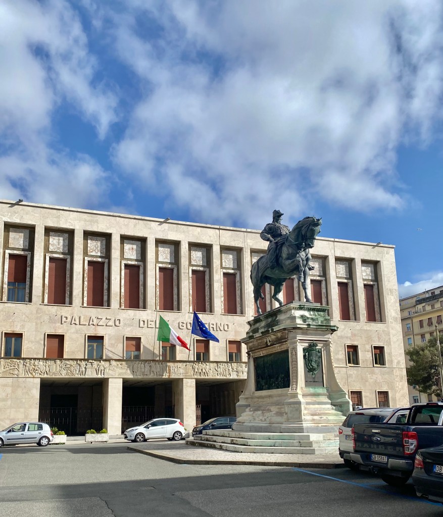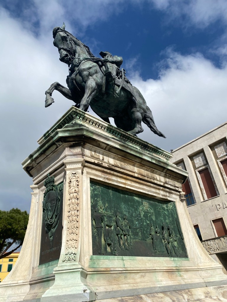 There is a mighty equestrian sculpture in front of the Art Deco Palazzo del Livorno: