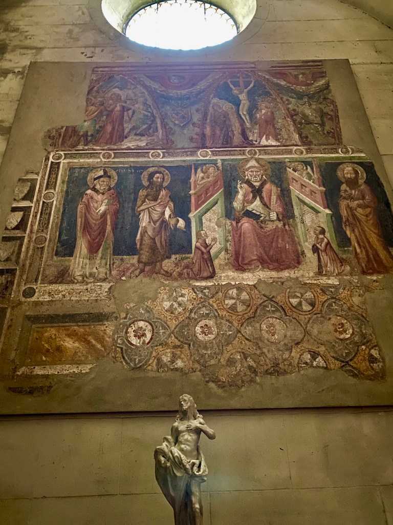 Next up, the church of San Frediano, which is very striking with its monumental 13th century mosaic of Christ in Ascension. This basilica has a special chapel devoted to the memory of Santa Zita, who was born in Lucca. A friend in the USA wanted pictures of this chapel and I was happy to find the basilica being opened just as I arrived. I got the pictures for my friend and thoroughly enjoyed the interior of the church. I was, as always in these days of early 2021, either alone in the building, or one of a handful. I am getting used to this and will probably be spoiled for the rest of my life, expecting to always have culture to myself.