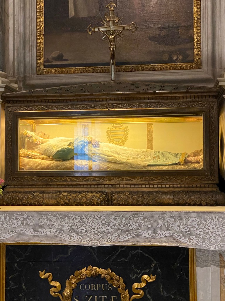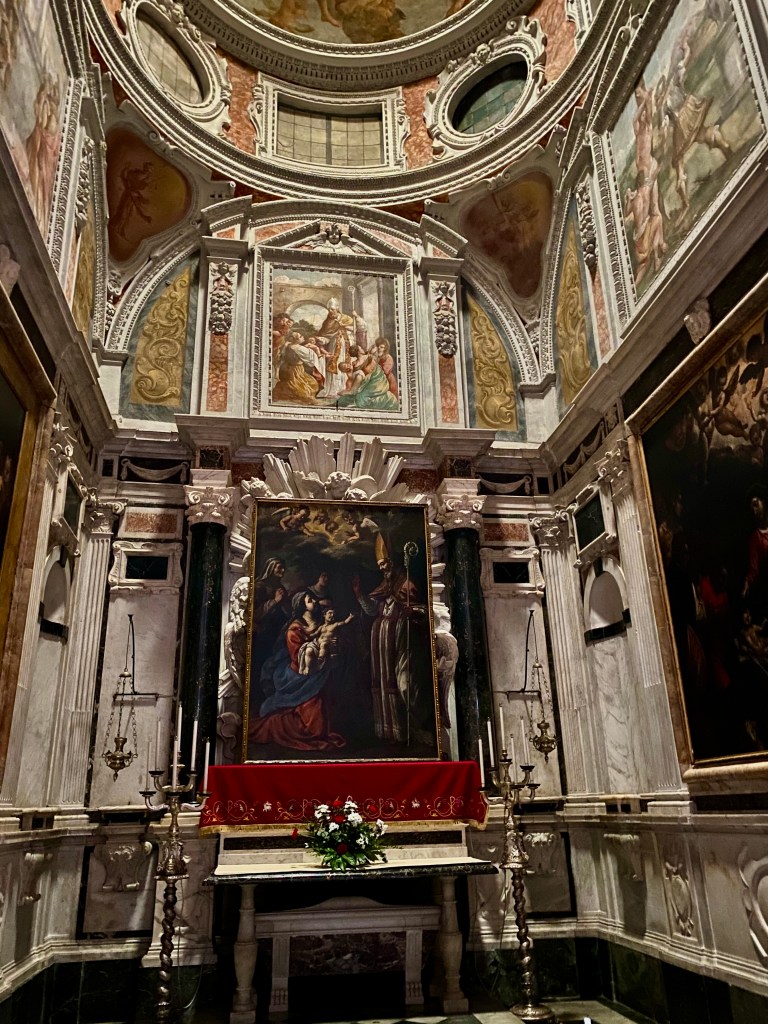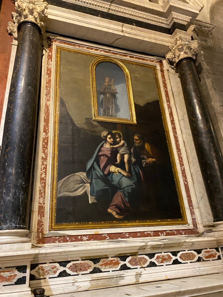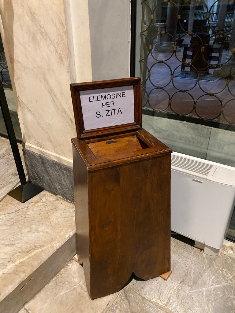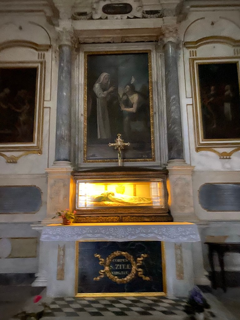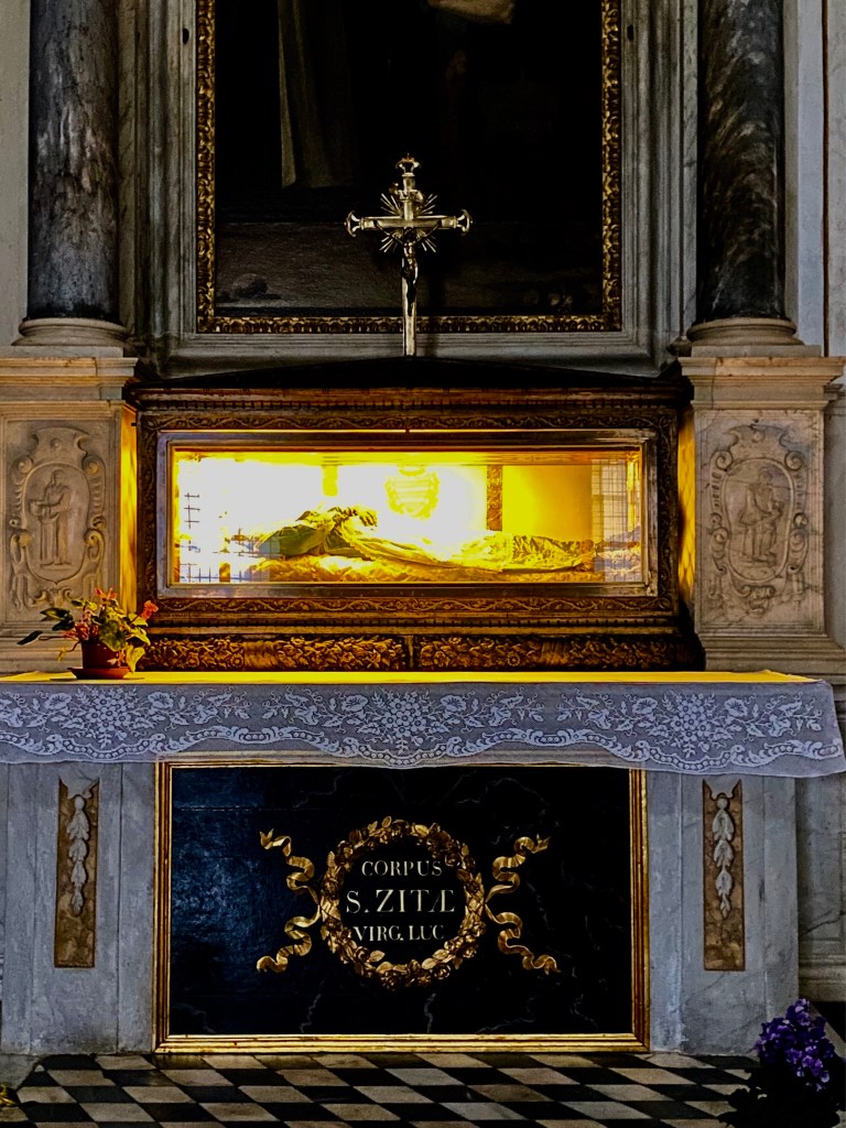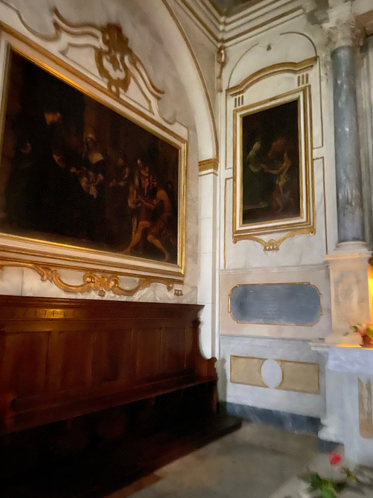 And now we shall enter the chapel devoted to Saint Zita. The stories of her miracles are depicted in the very dark oil paintings around the chapel.