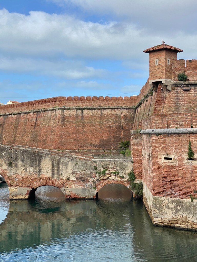 The Medici duke’s era is plainly written on the architecture of Livorno; these fortifications look like the brother of the Fortezza da Basso in Florence. Same era, same materials, same architect.