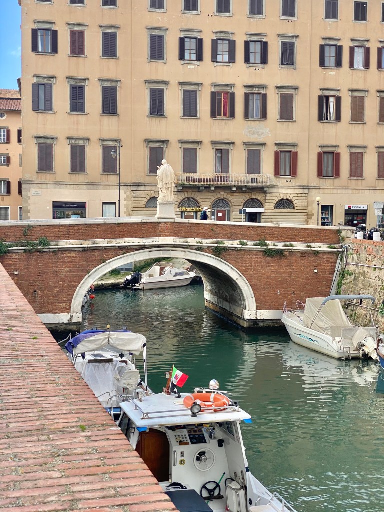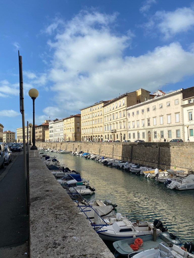 When I was in Livorno the last time, I had the great pleasure of touring the Venetian quarter of Livorno by boat with my friends. This time, I simply followed the canals on the neighboring sidewalks, enjoying the sunshine, the water views, and the sounds of Livorno and its seagulls.