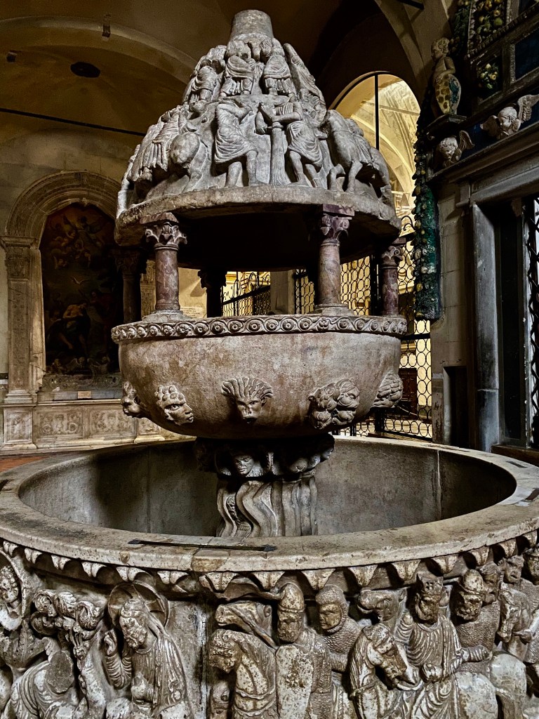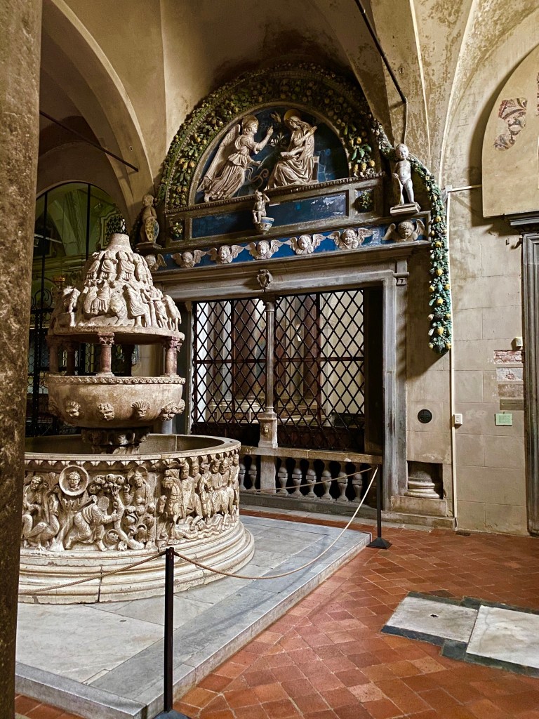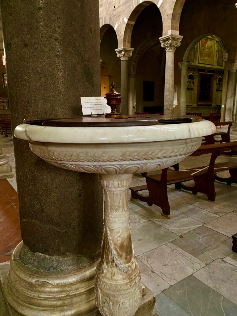 The pictures below show the elaborate baptismal font inside San Frediano.