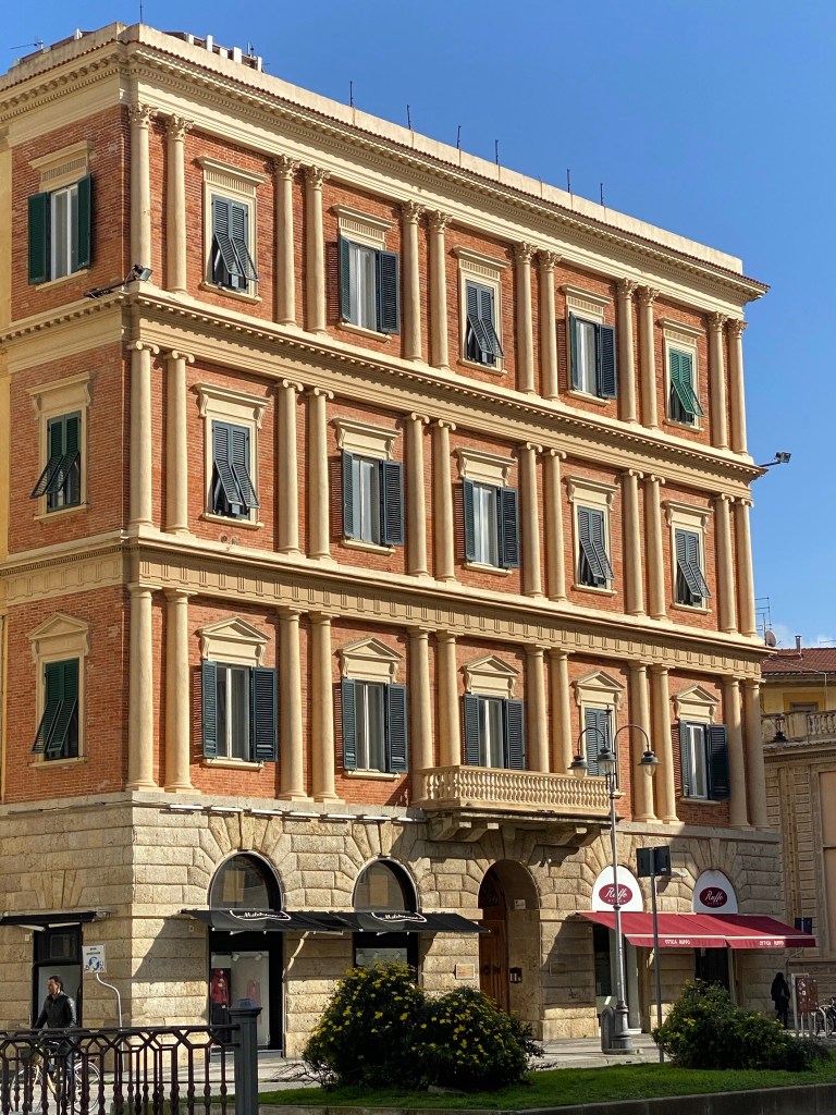 Check out these bright orange and yellow buildings! The colors stuccoed onto buildings in Livorno are much stronger than the golds and ochres I am accustomed to in Florence. I like it!
