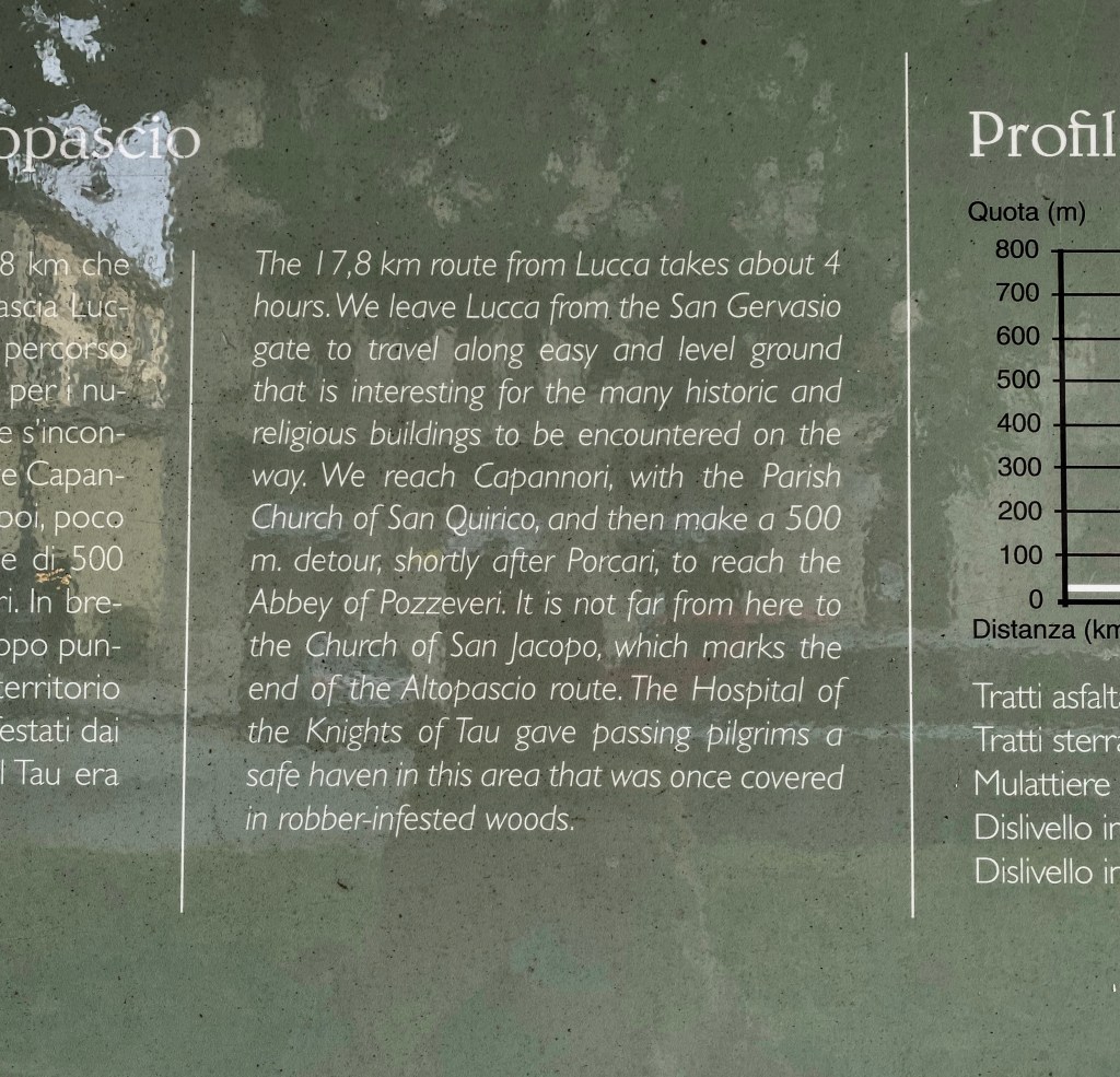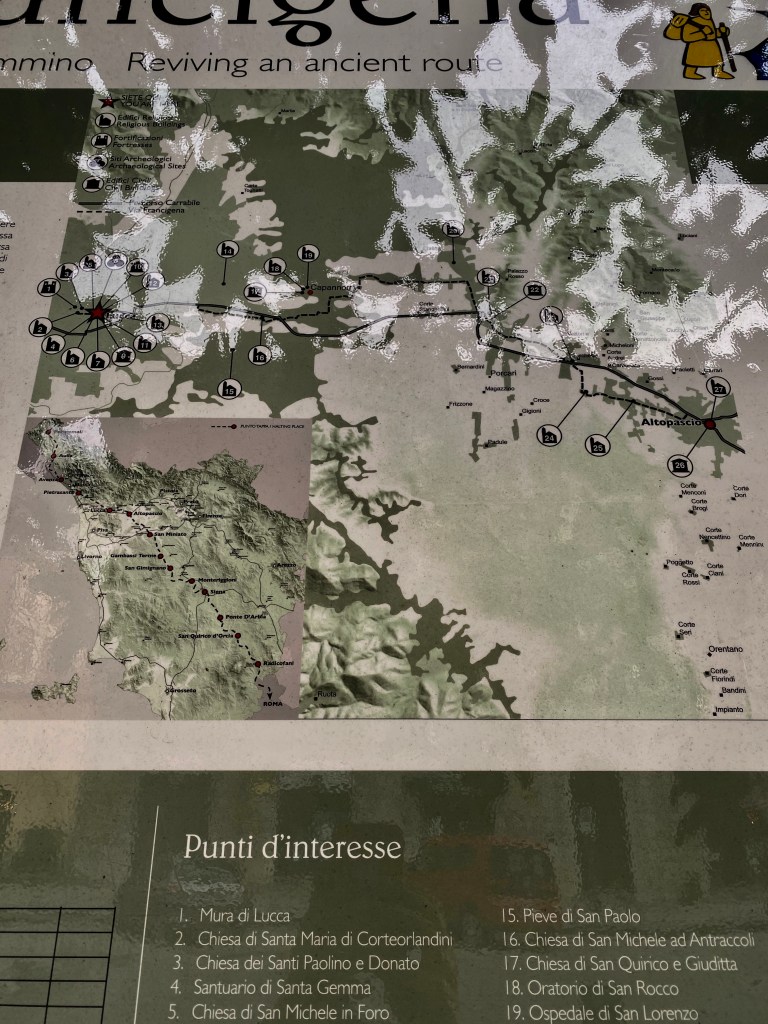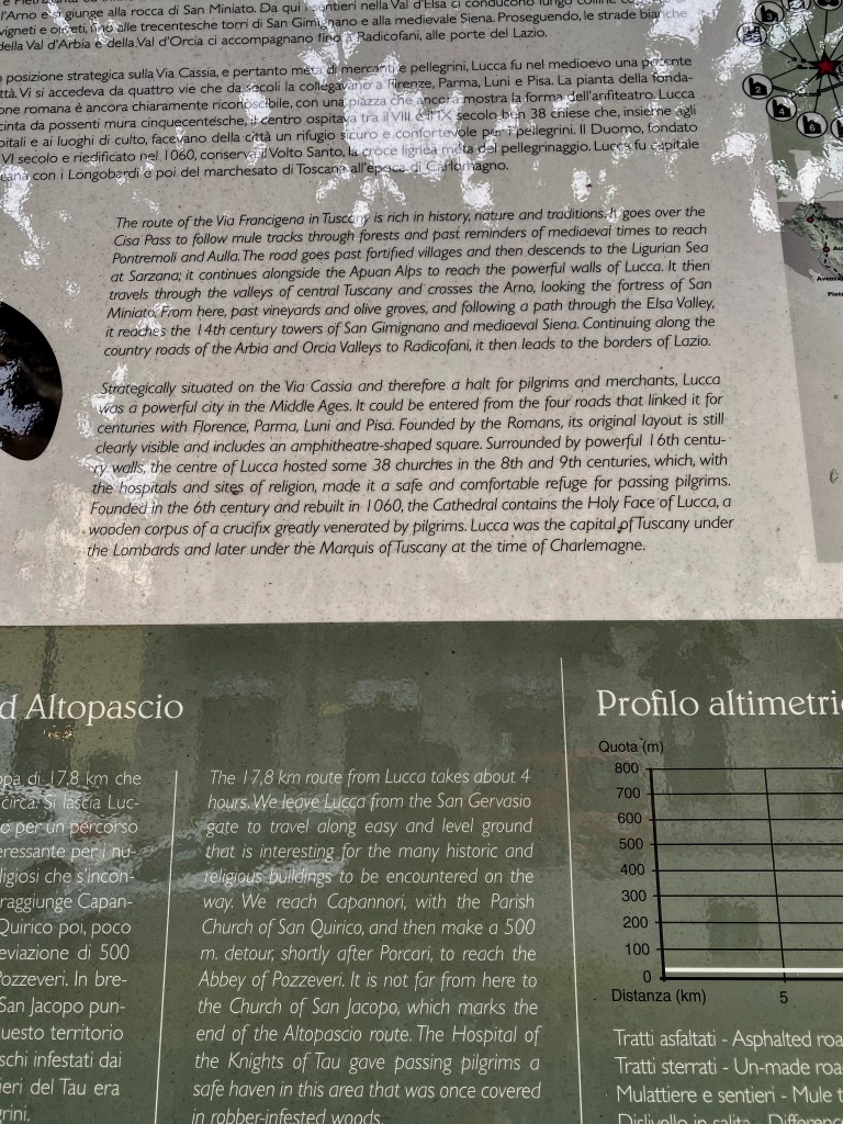 As I walked back to the train station to go home to Florence, I saw these signs devoted to the Via Francigena, the famed pilgrimage route that funneled travelers from all over Europe towards Rome. It passed through Lucca.