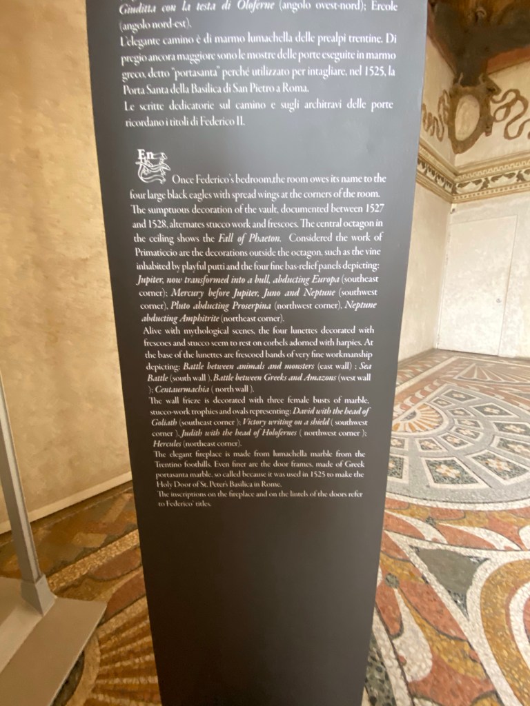 Below, from the Hall of the Horses. The Gonzaga dynasty were particularly well-known for their horse connoisseurship, as well as their horse breeding.