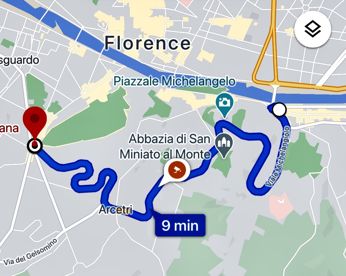 I spend a lot of time on the Viale dei Colli, the gorgeous drive through the hills to the south of the city of Florence. This is where you will find Piazzale Michelangelo (designed by Poggi) as well as the Rose Garden, San Miniato al Monte, Forte Belvedere and so much more. Poggi linked all of these sites along his magnificent Viale, which was then covered with expensive villas by wealthy citizens.