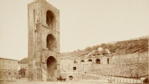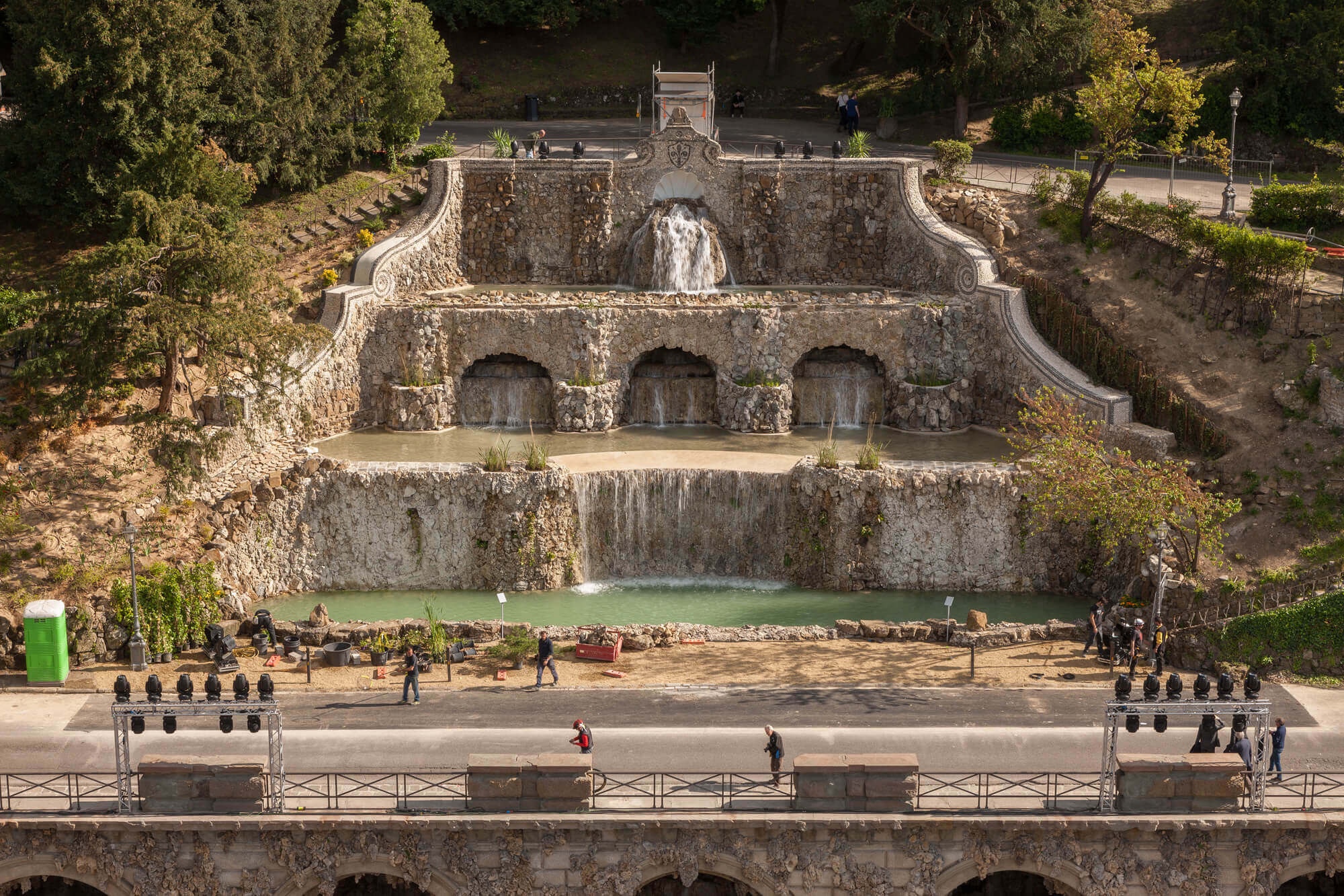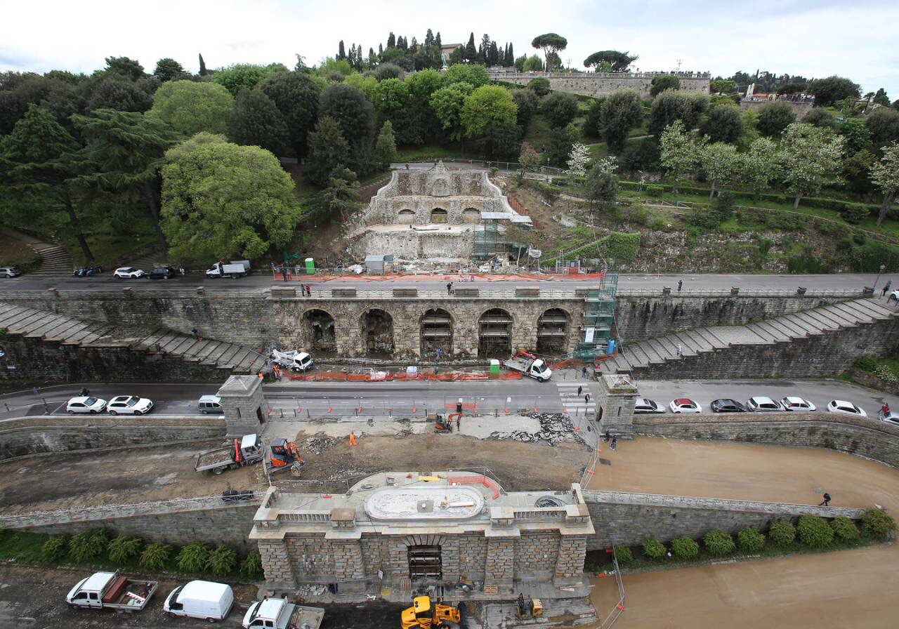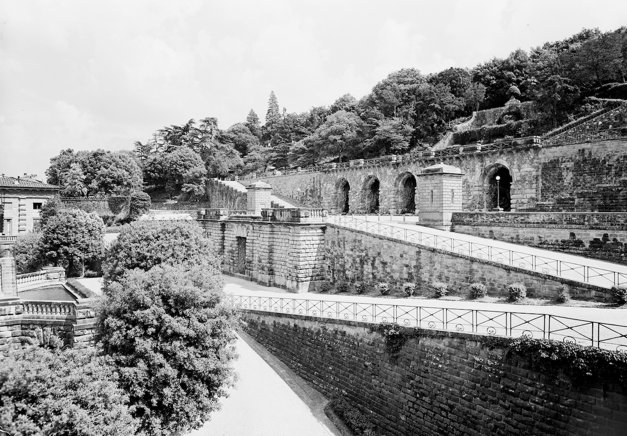 An early photo of Poggi’s grottoesque water feature leading into the Oltrarno from the Viale.