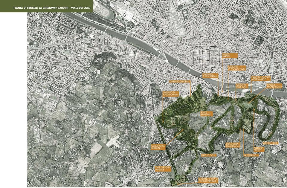 This map shows in dark blue the overall range of the Viale dei Colli.