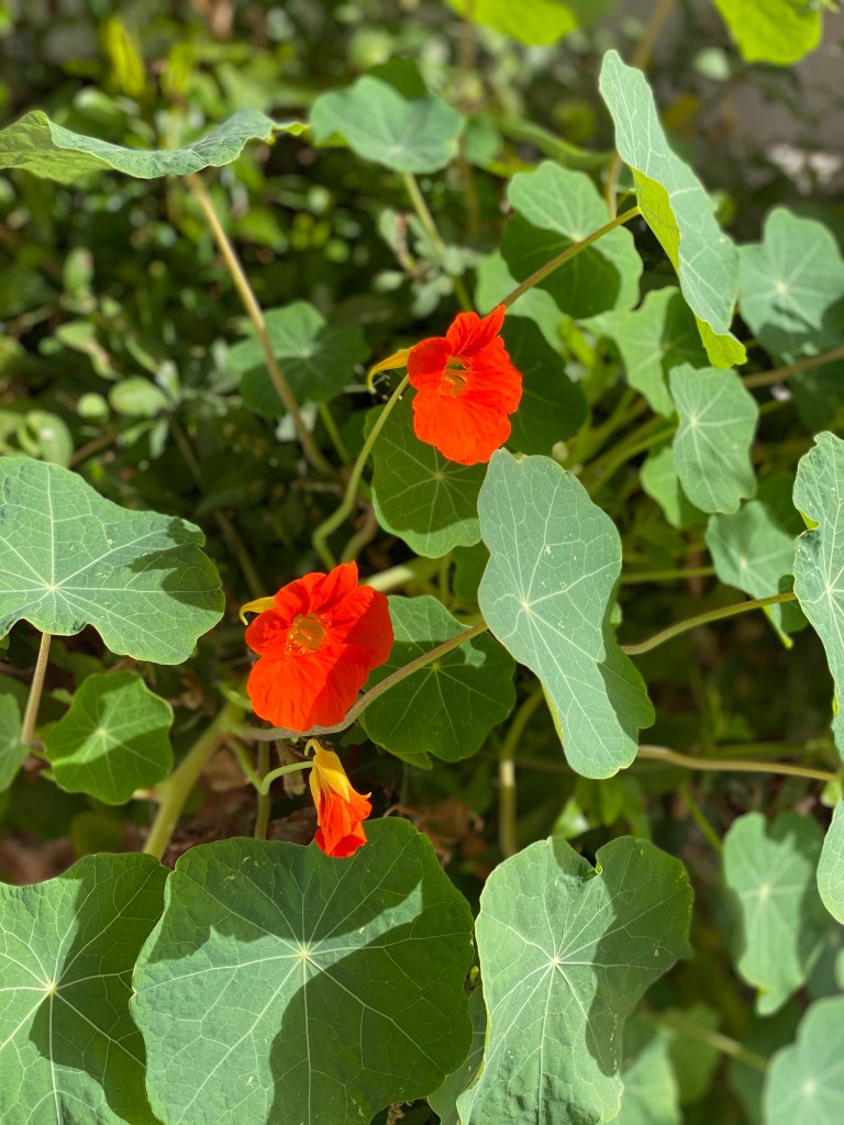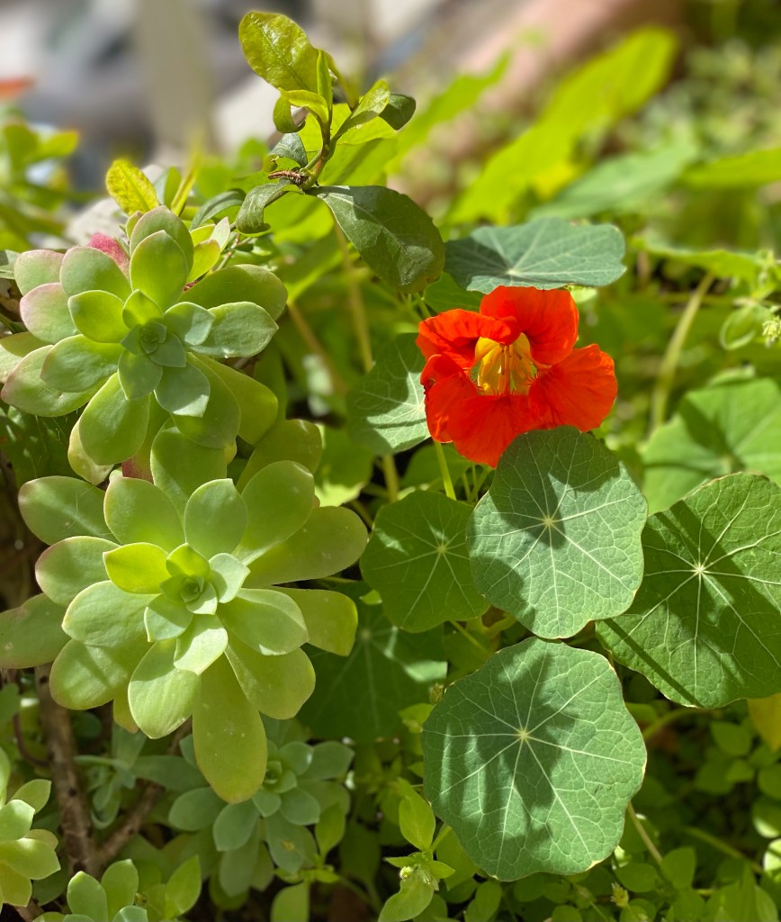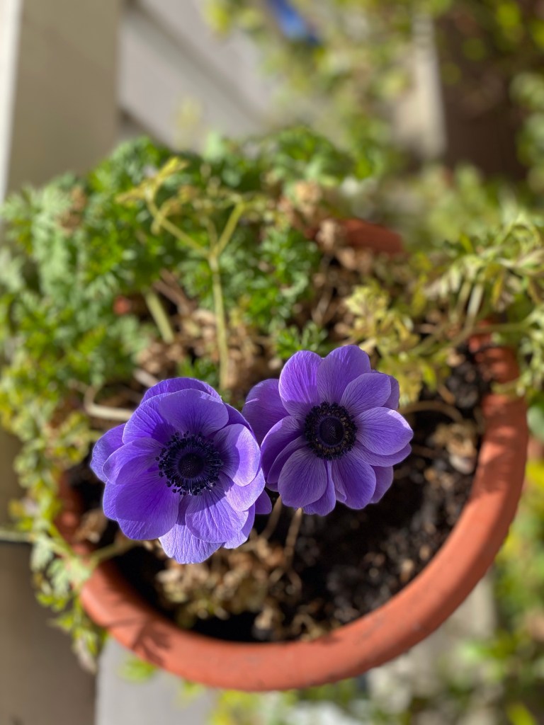 My nasturtiums over-wintered all on their own and have begun their 2021 blooming season! Along with this purple anemone. Despite cooler temps this weekend, spring is in the air!