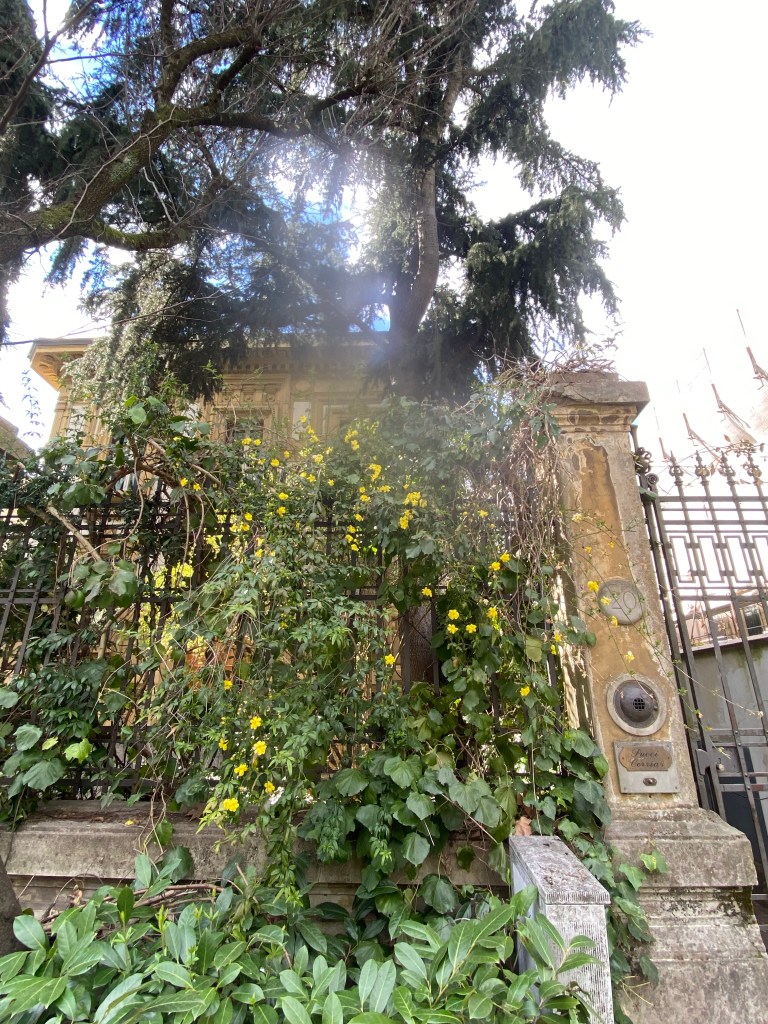 For the past five springs, during the time I’ve been so lucky to be living in Florence, I’ve seen this spectacular shrub or vine or whatever it is and wondered what it was. Was it in the rose family? I’ve seen it vining through the most spectacular locations: over walls, through lattice, draping over fences.