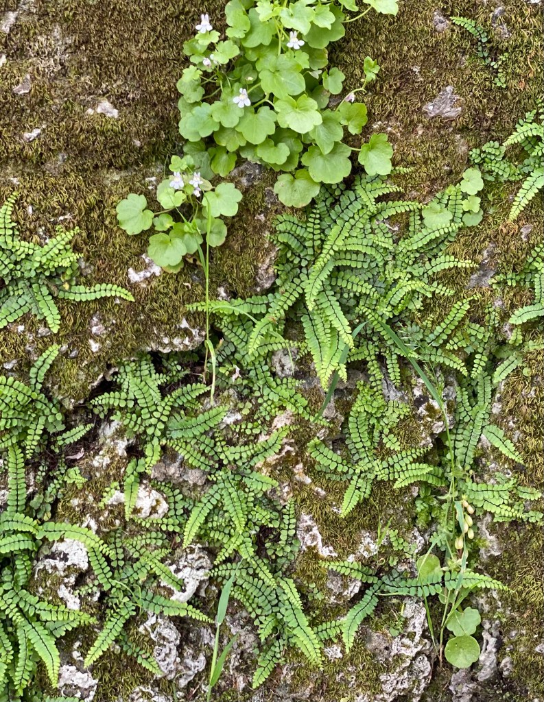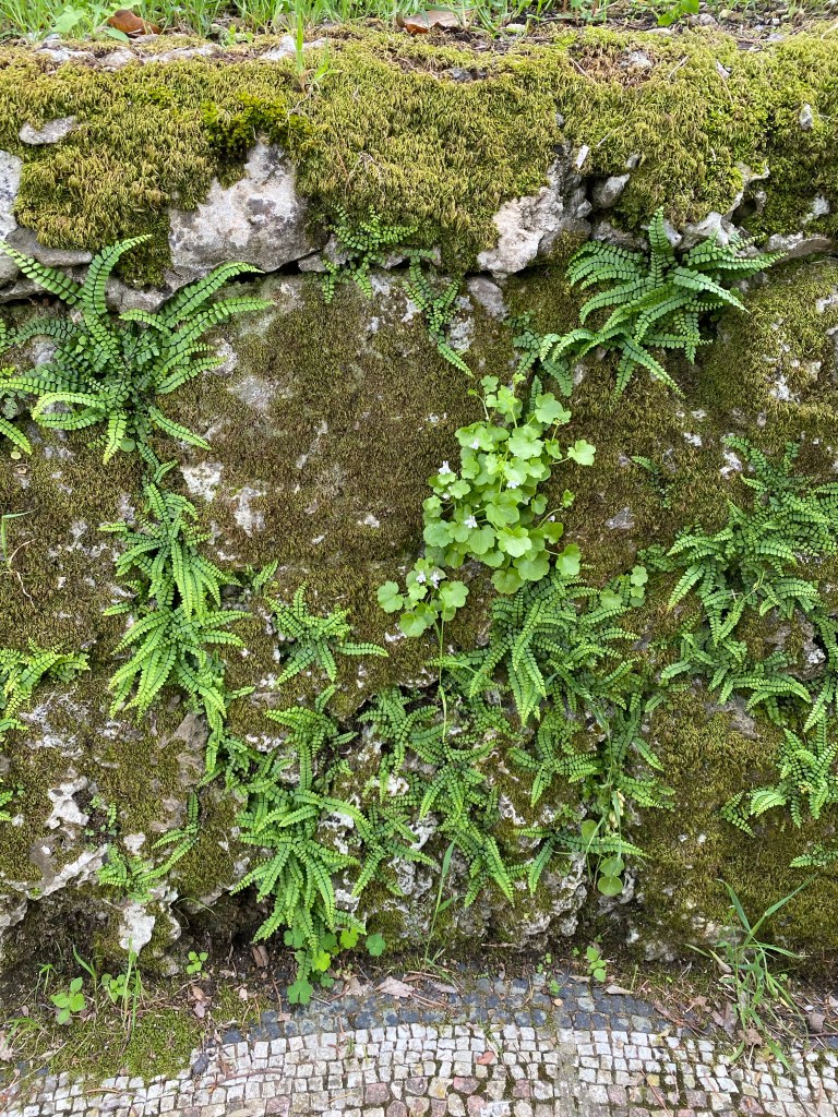 But, for me, nothing was more beautiful on that recent day than the stone wall, sprouting with moss and new ferns. How lovely the design!