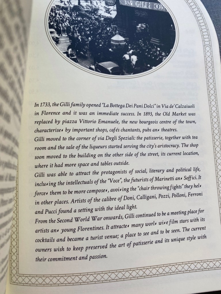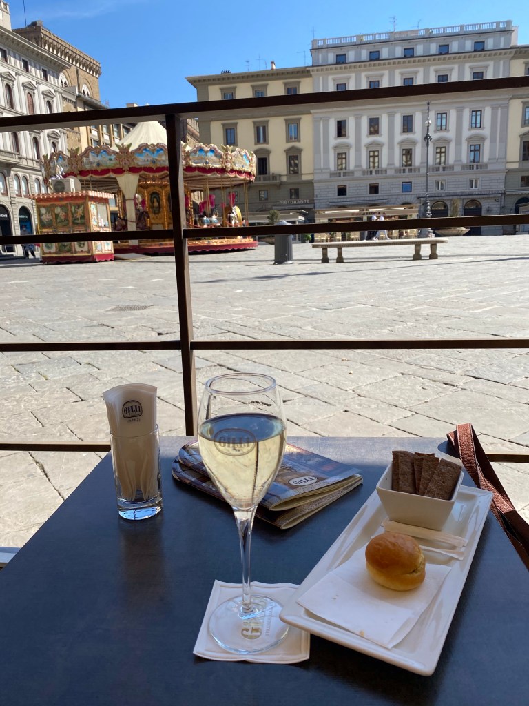A couple of weeks ago, when we joined the yellow zone of fewer restrictions, a friend and I met at Gilli, my favorite coffeehouse in Florence, to celebrate. Here are a couple of photos taken on that bright sunny day. We were exhuberant.