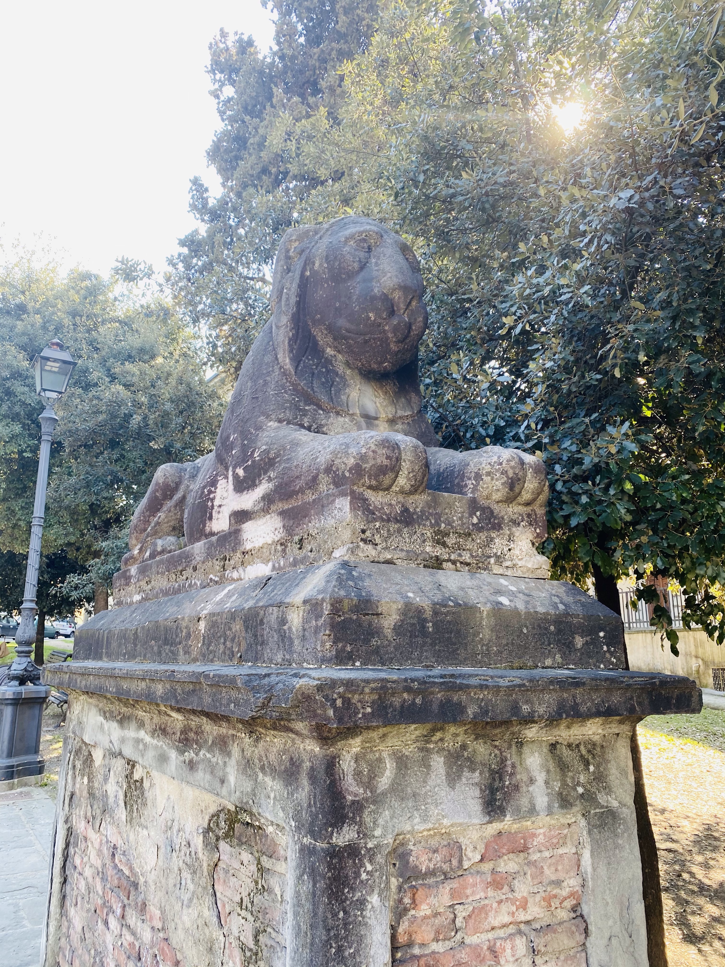 At the base of the Viale are the other 2 cats that match the bright, white marble ones shown at the top of this post. Unfortunately, these at the base of the Viale are a little less well-kept.