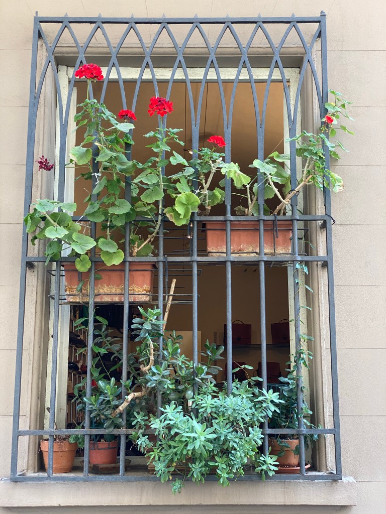 Below, a common sight throughout Italy, but a beloved sight nonetheless. Red geraniums.