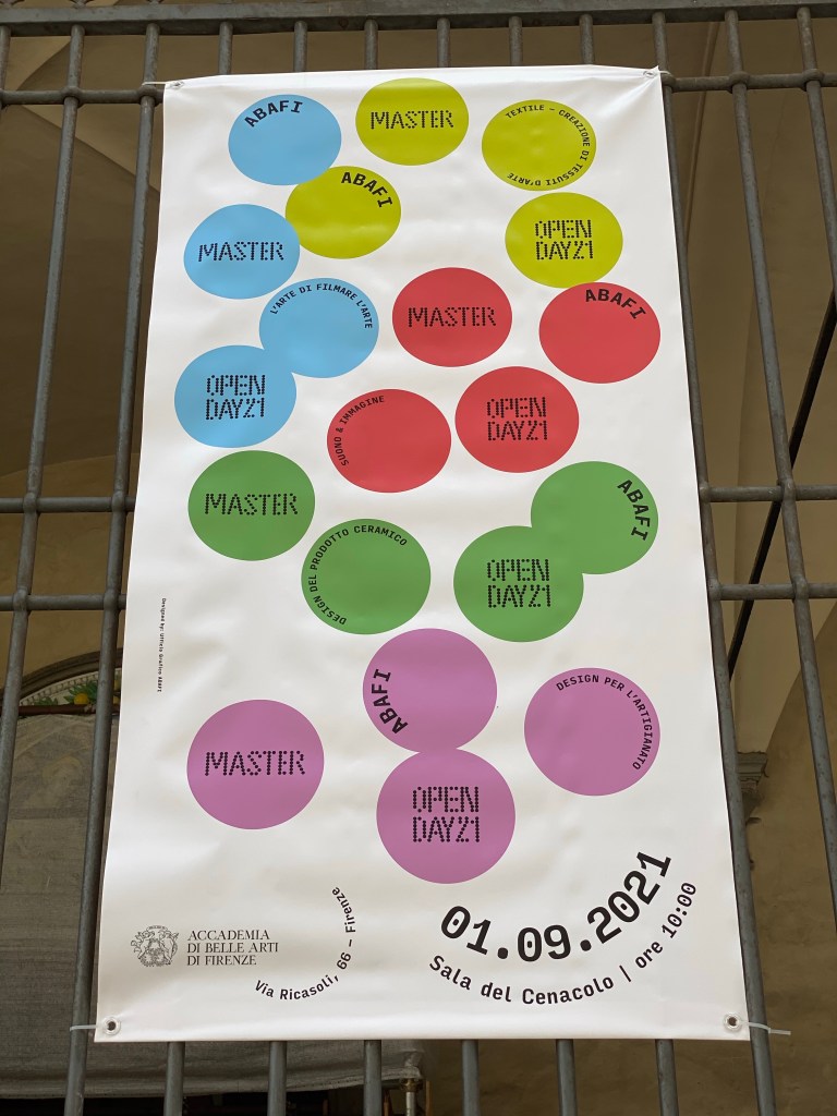 Walking near the Accademia, I noticed this poster, which seems to be advertising the beginning of a new master’s course in the fine arts, beginning today, 1 September. Life is resuming as normal?