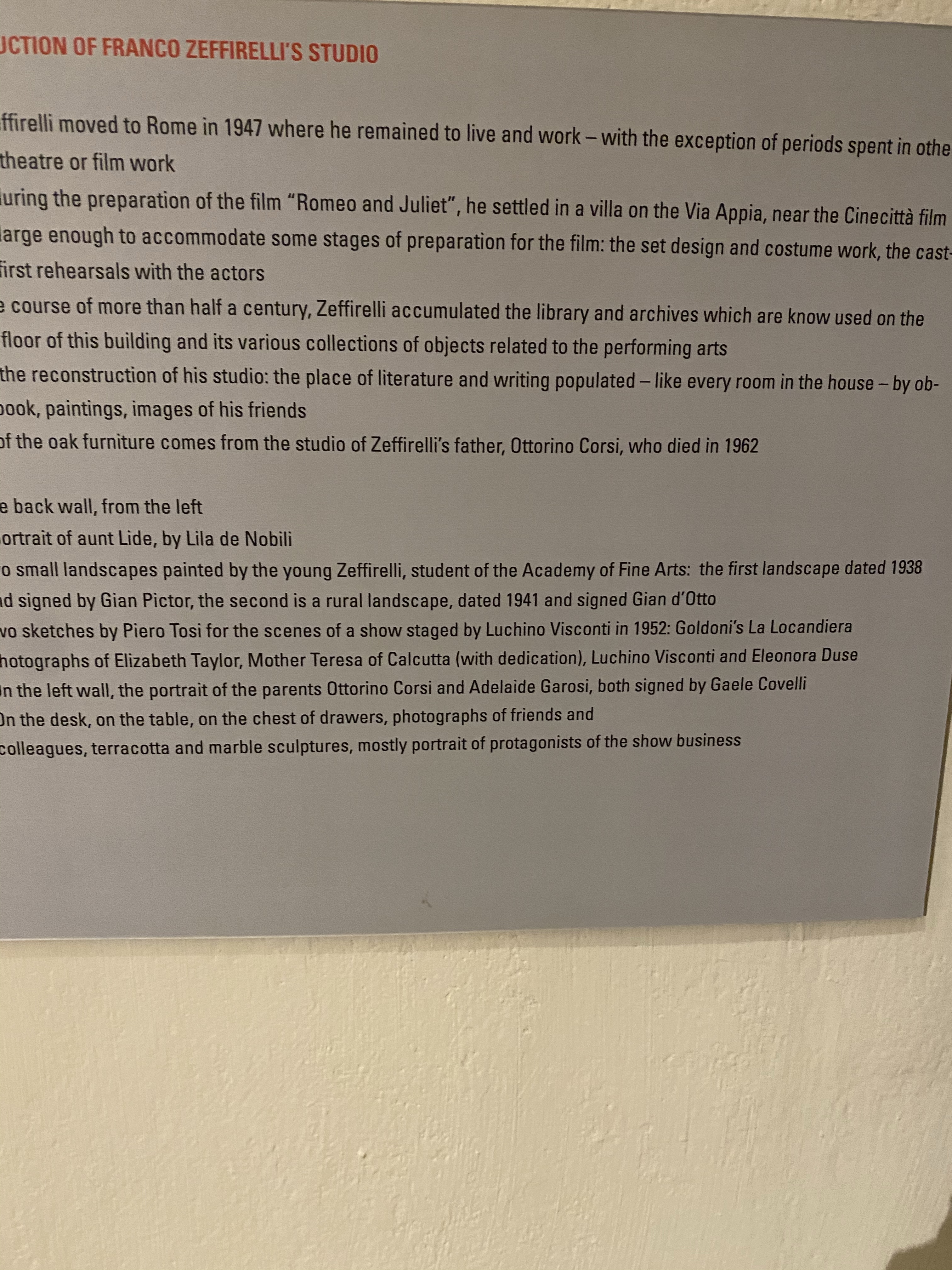 Below are some of the pictures I took of various things on view that caught my eye. If you love Zeffirelli, you will not want to miss this place.