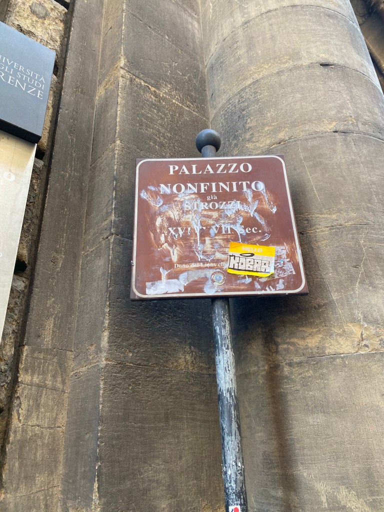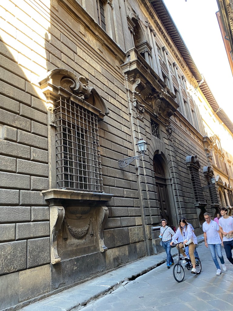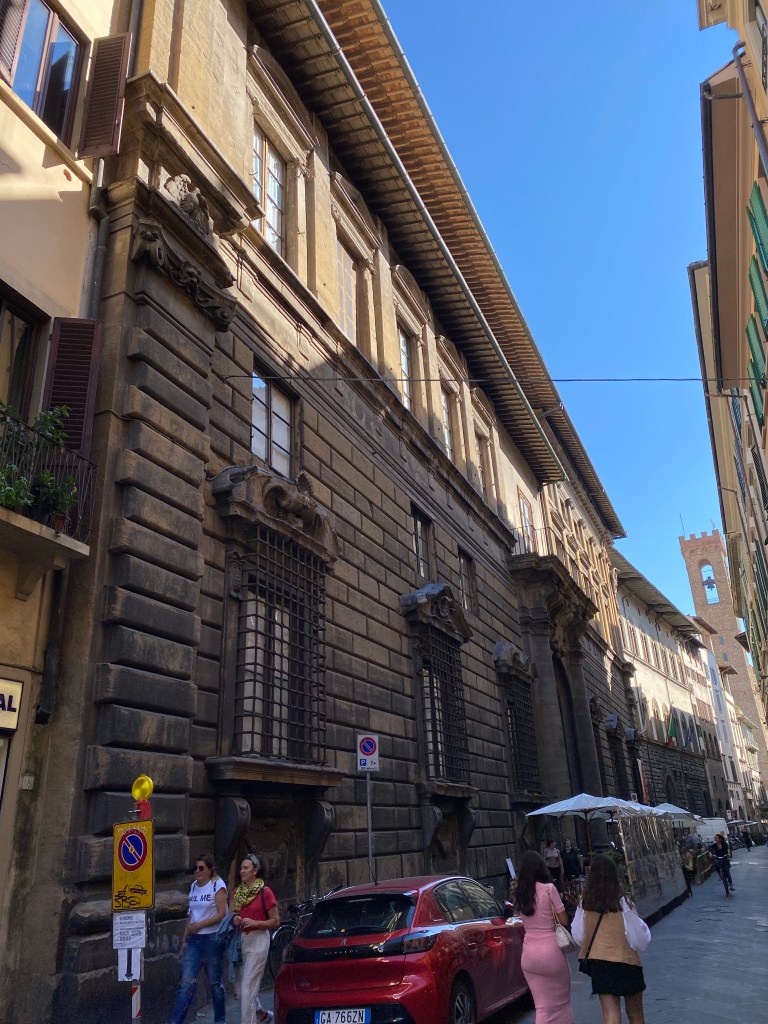 A few days ago I published a post on the Anthropology museum in Florence. It is housed in a major late Renaissance palazzo called the Palazzo Nonfinito. Today’s post is about this historic building in Florence, located with its main facade on via del Proconsolo 12, but with a 2nd, notable elevation on Borgo degli Albizi 32. Another way to situate the palazzo is that it sits smack on the corner called Canto de’ Pazzi.