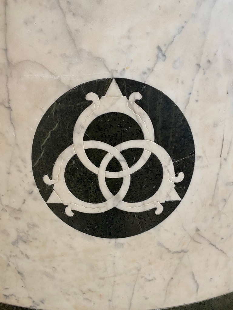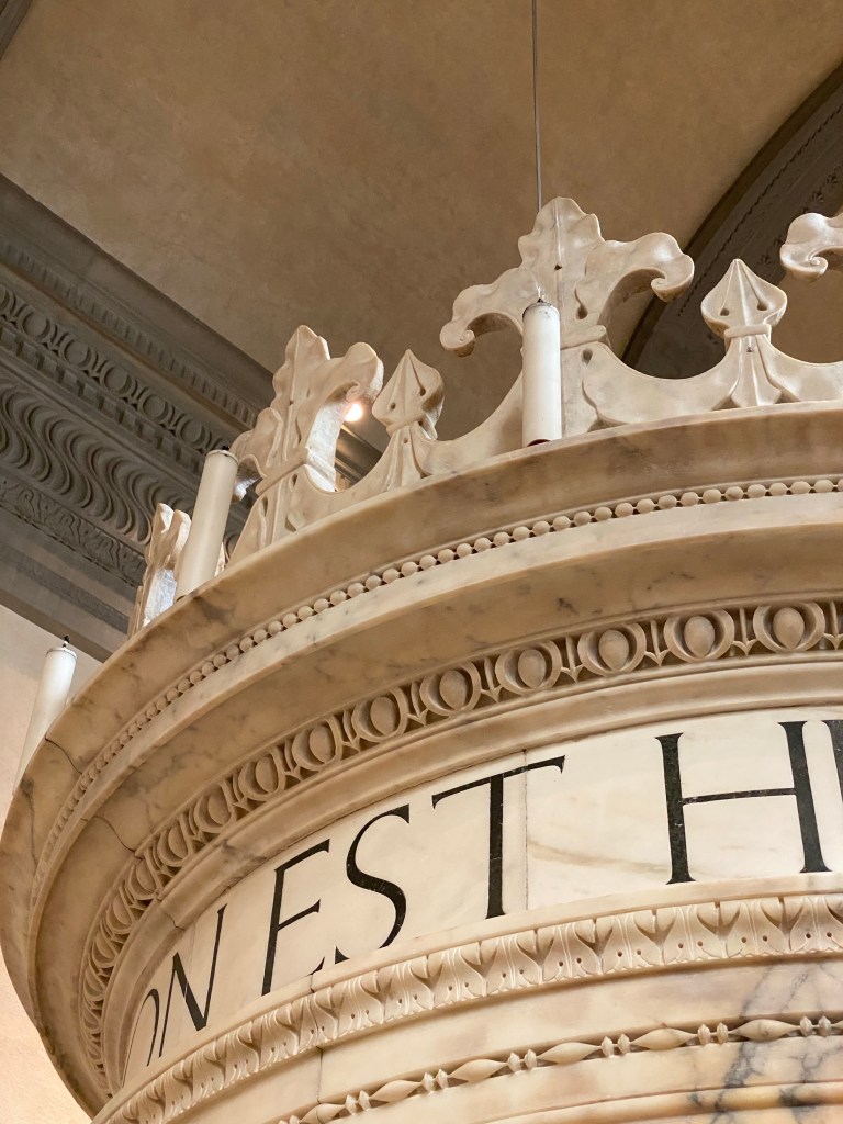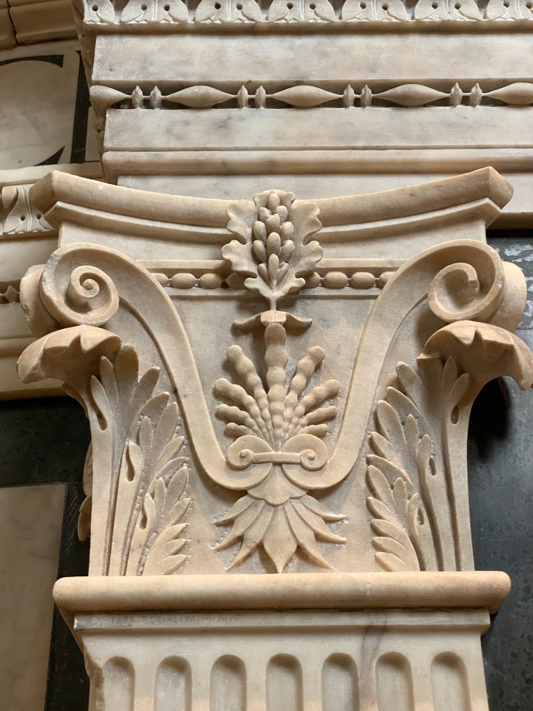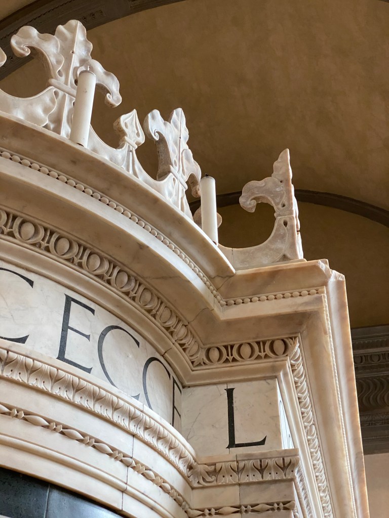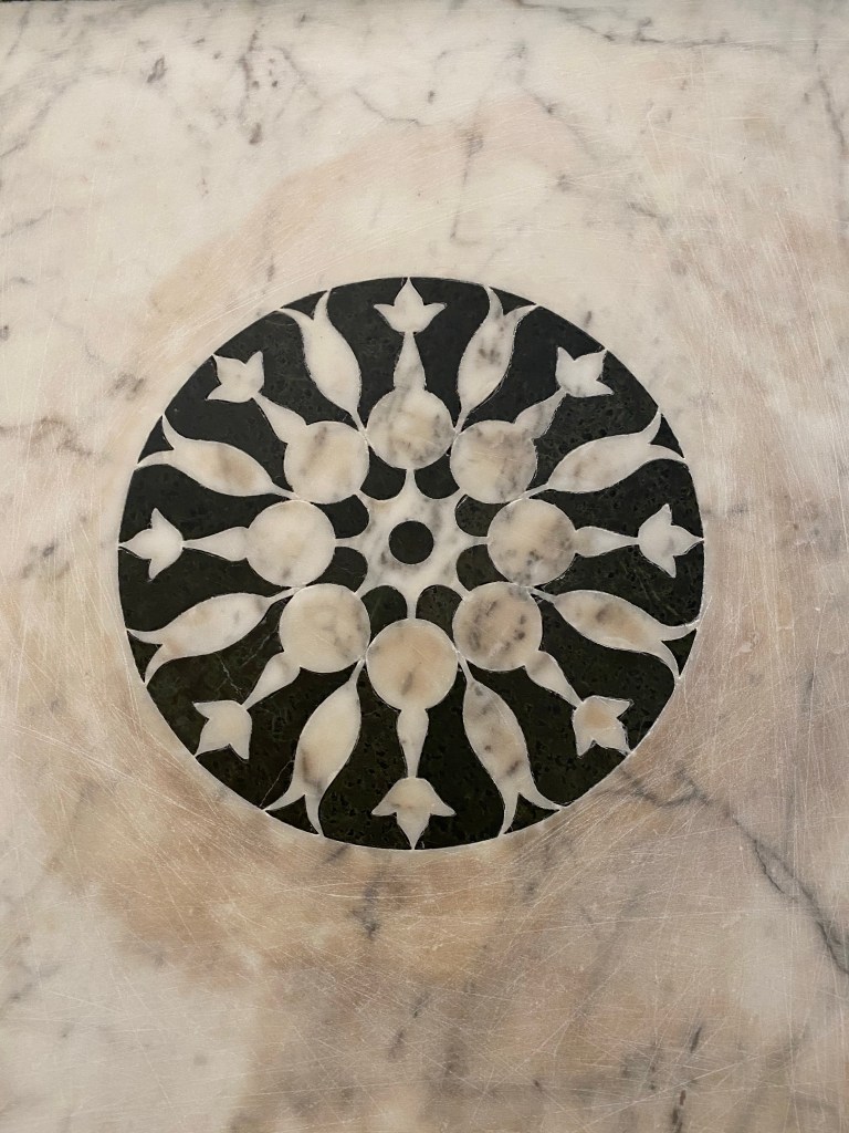 Once can’t always get up close to a work of art, but here you can and I enjoyed looking at every inch of the mausoleum. The carved pilasters glowed like alabaster (though they are the whitest marble).