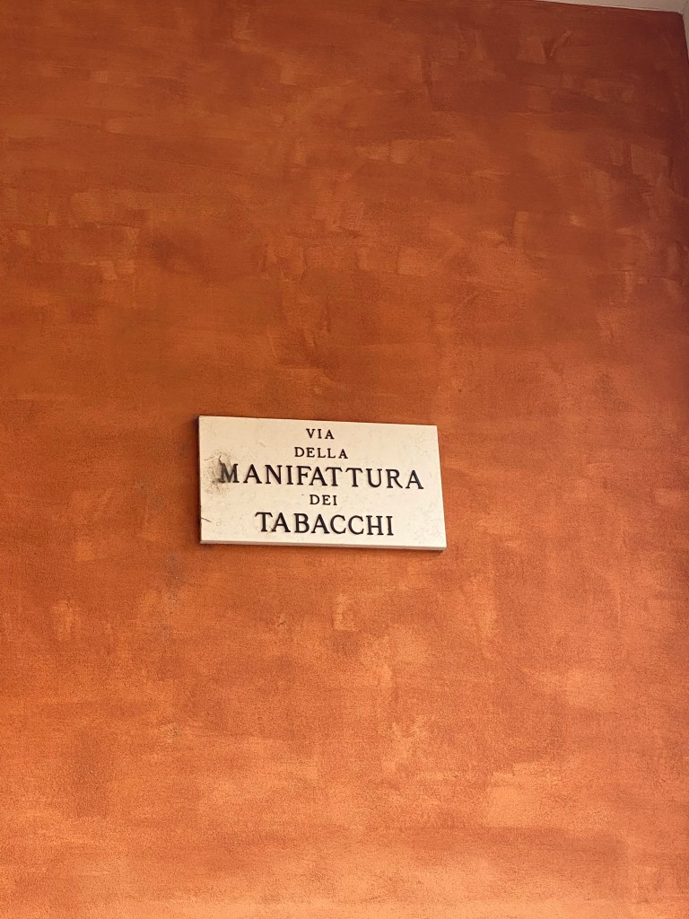 Walking from the train station to the center takes you along the Via della Manifattura dei Tabacchi. A small reminder, for an American like me, that the New World and its products had a profound influence upon the old world.