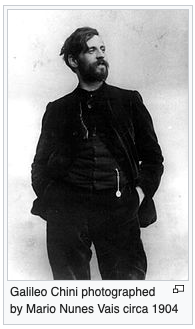 CHINI , Galileo . – He was born in Florence on December 2. 1873 by Elio, tailor and fliscorn player, and by Aristea Bastiani.