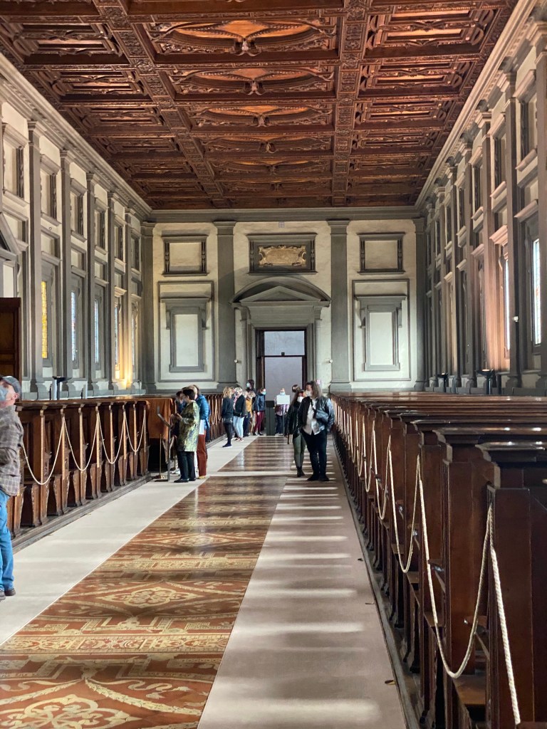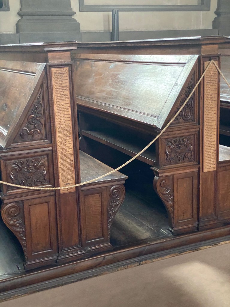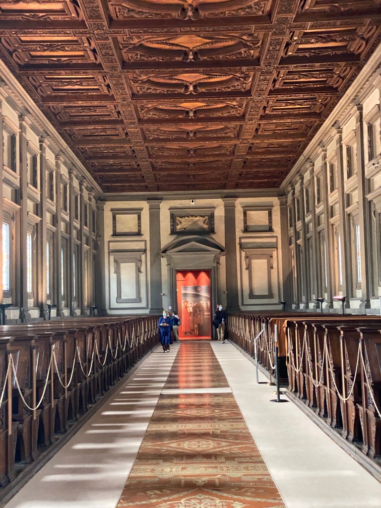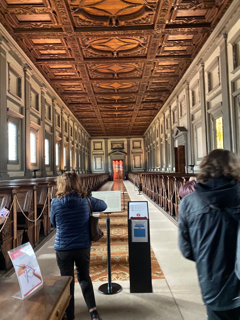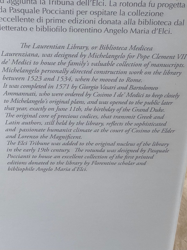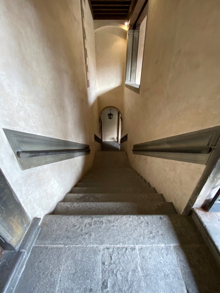 This is the stairway leading from the cloister at ground level to the entrance of the Laurentian Library.