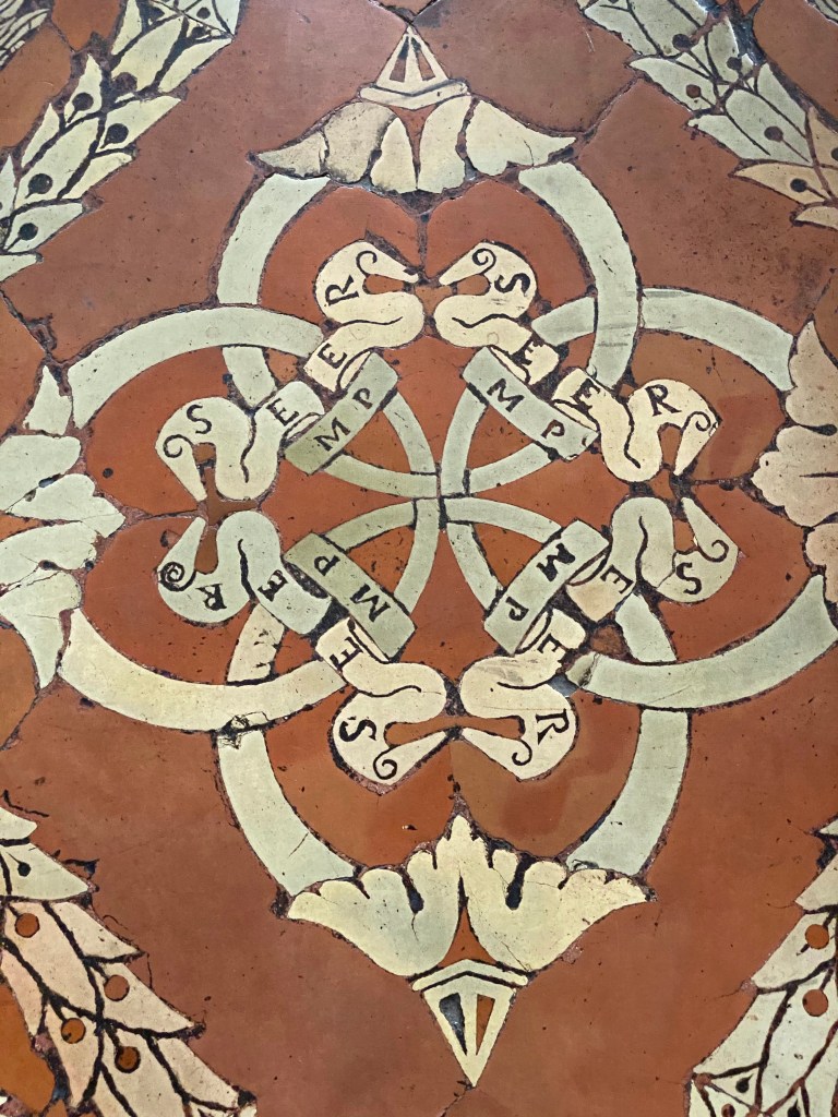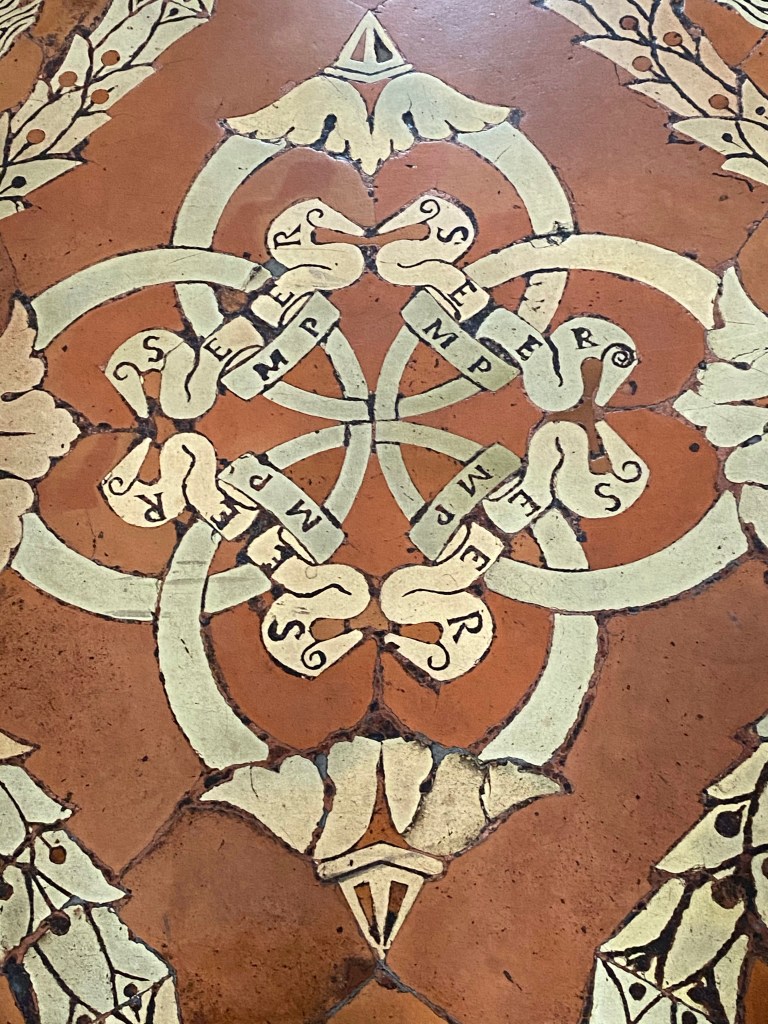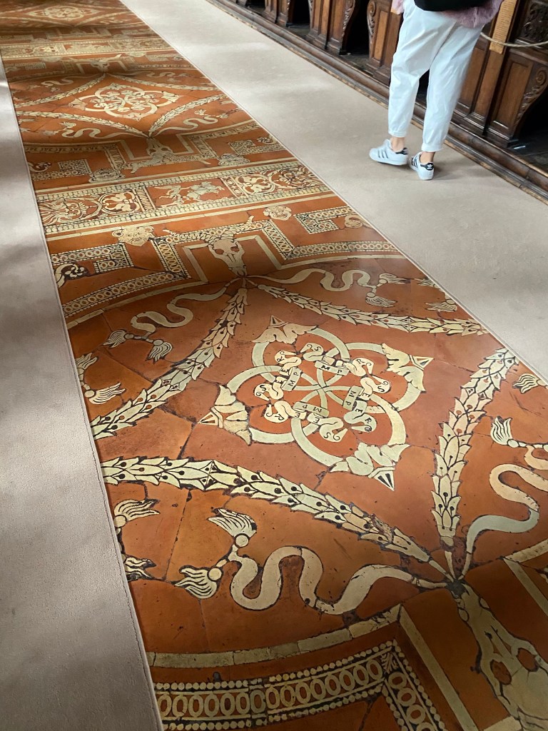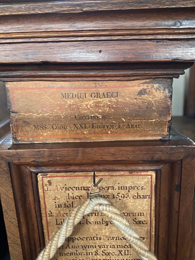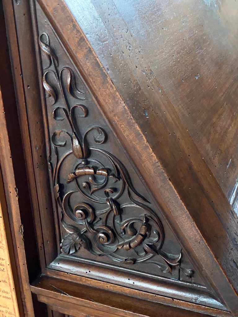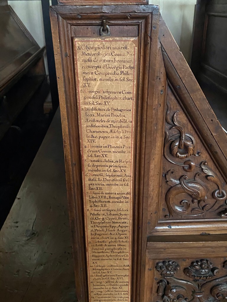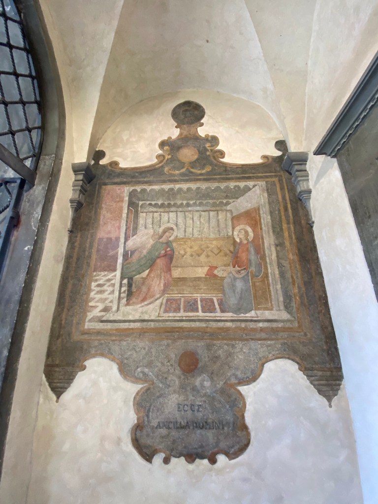 Below is the painting of the Annunciation that greets each visitor before they enter the upper cloister that leads to the foyer of the library.
