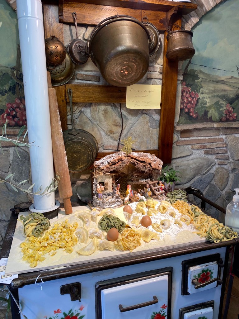The crèche in a field of homemade pasta. My field of dreams! NB: the crib is always empty until midnight in the 25th. Then the child appears on his birth day.