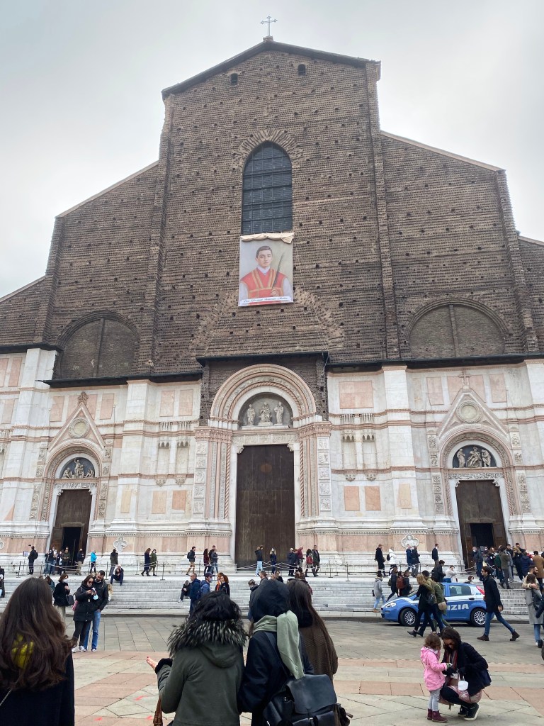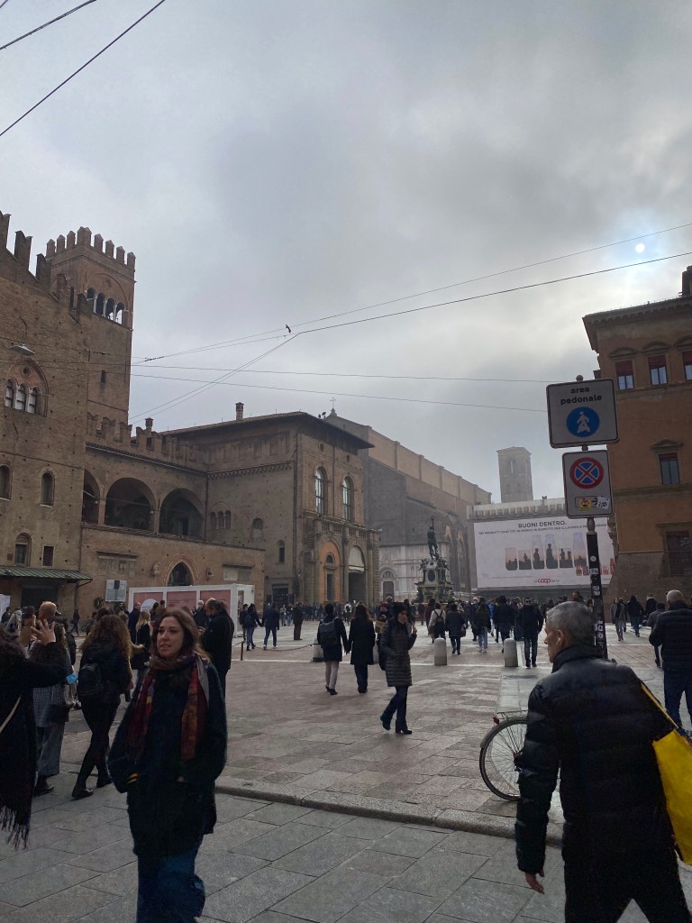 Above, looking through Piazza Nettuno, with Giambologna’s fountain masterpiece, looking further towards Piazza Maggiore with the Basilica of San Petronius.