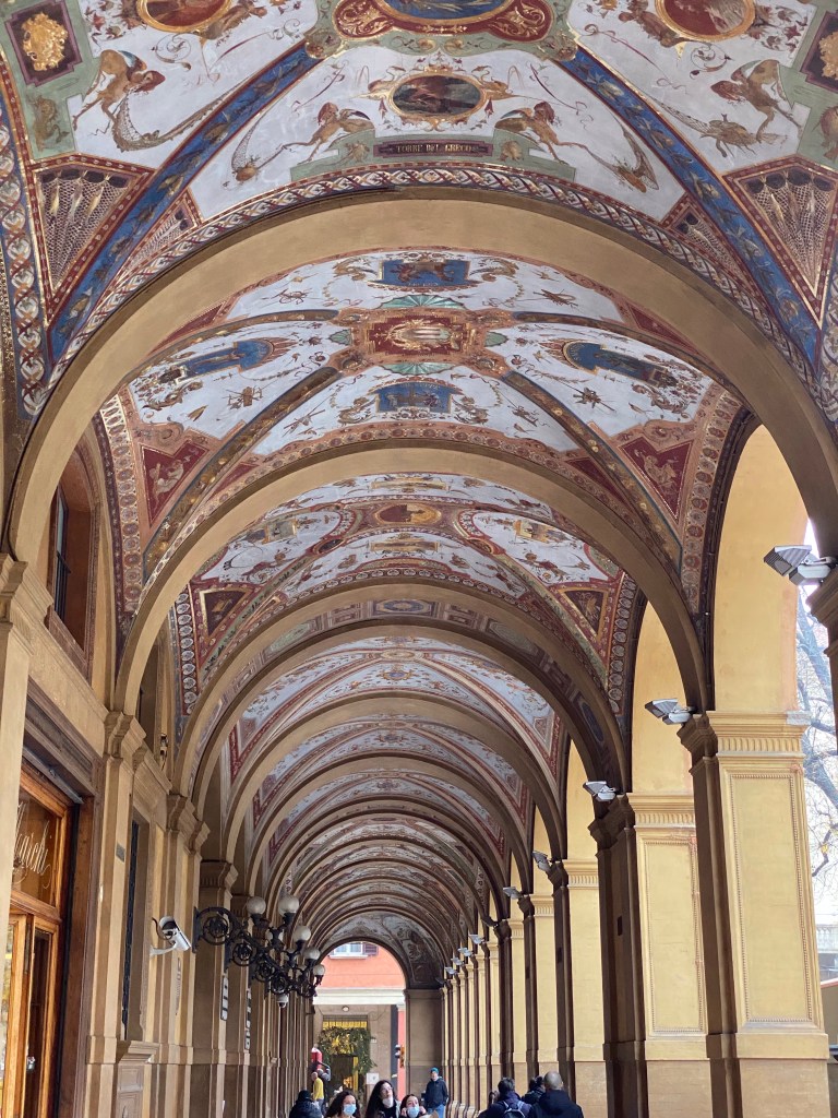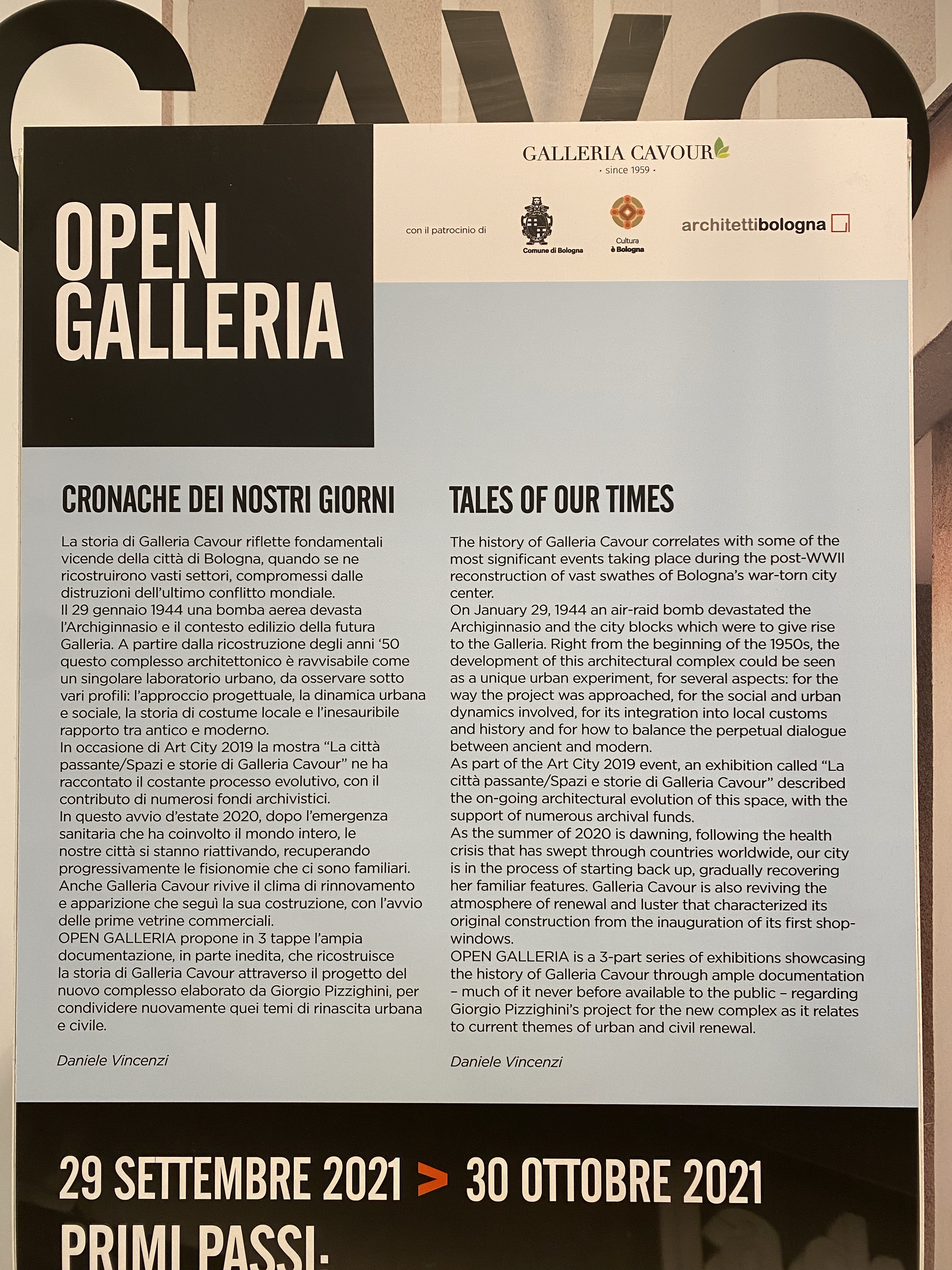 The elegant and upscale Galleria Cavour. Located in the Palazzo VASSÉ which was from 1550 an important patrician residence/ Partially destroyed in WWII, since 1959 this location has been the prestigious venue of the Cavour Gallery. The Cavour Gallery is inside one of the oldest and most important buildings in Bologna. Built in the 1500s, bombed during the war and now restored, it contains important art jewels all to be discovered.