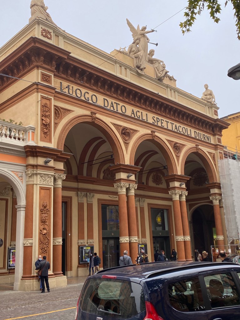 The main front is decorated with two bas-reliefs: Bologna docet by Arturo Colombarini and Bologna Libertas by Ettore Sabbioni. In the center, a fountain, made by Diego Sarti (1859-1914) and Pietro Veronesi, based on a design by Muggia and Azzolini, represents a nymph attacked by an octopus. She will be commonly called “the wife of the Giant,” that is of Neptune, and Giosue Carducci will dedicate a famous sonnet to her.