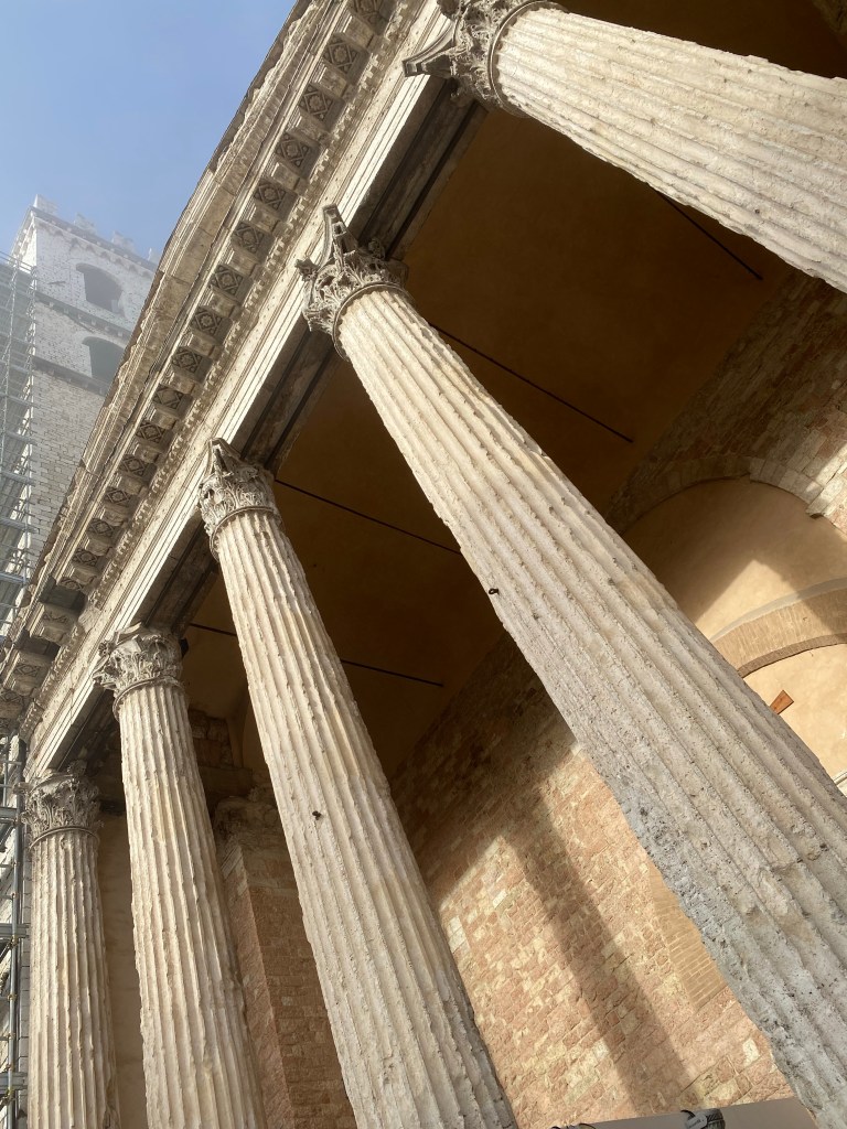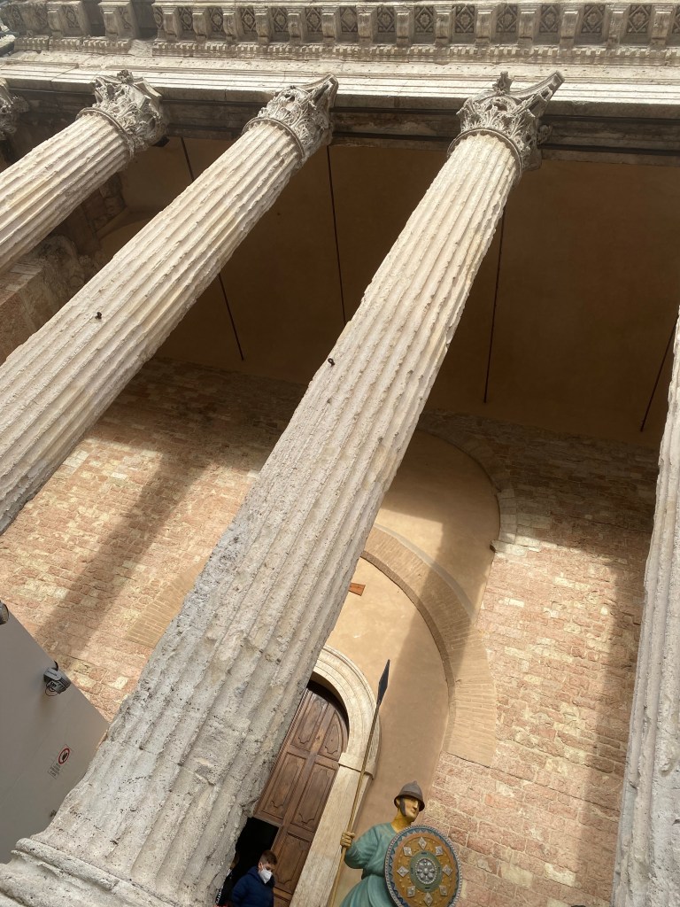 One of the most amazing Roman Empire remains is in the heart of Assisi. The former temple to Minerva was subsumed by Christianity and made into a church dedicated to St. Mary.